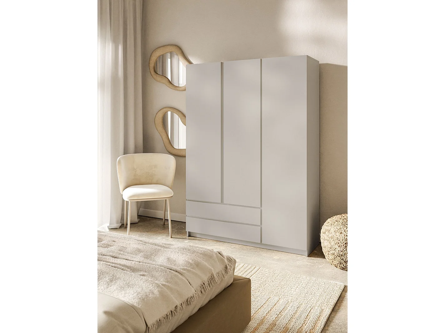 Armoire 3 portes 2 tiroirs – 150 cm – gris cachemire – BEMMI