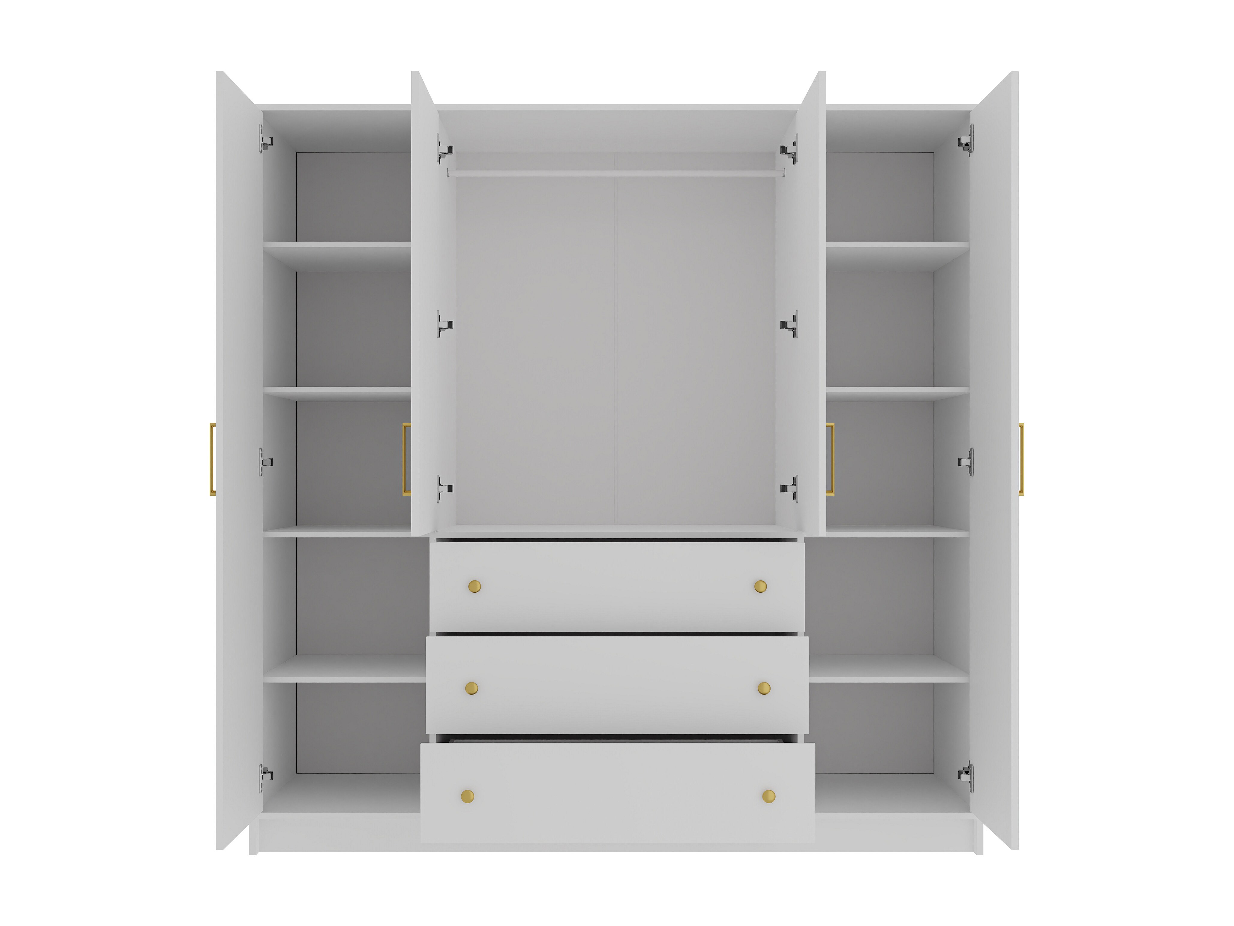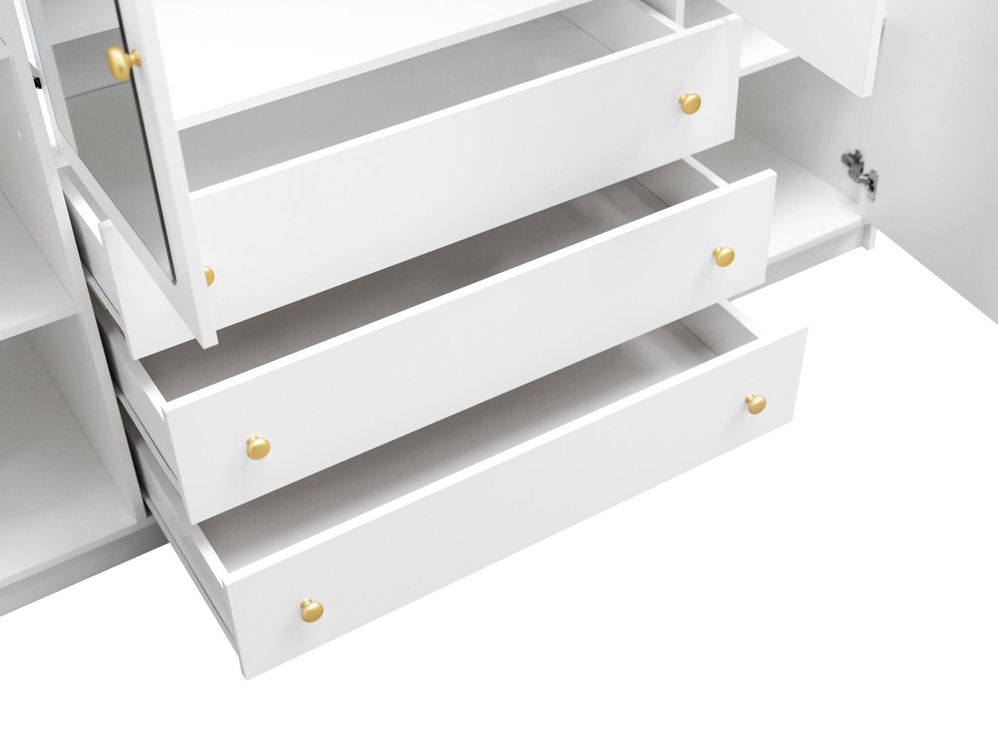 Armoire 4 portes et 3 tiroirs - Avec miroirs - L196 cm - Blanc - LIZANDRO