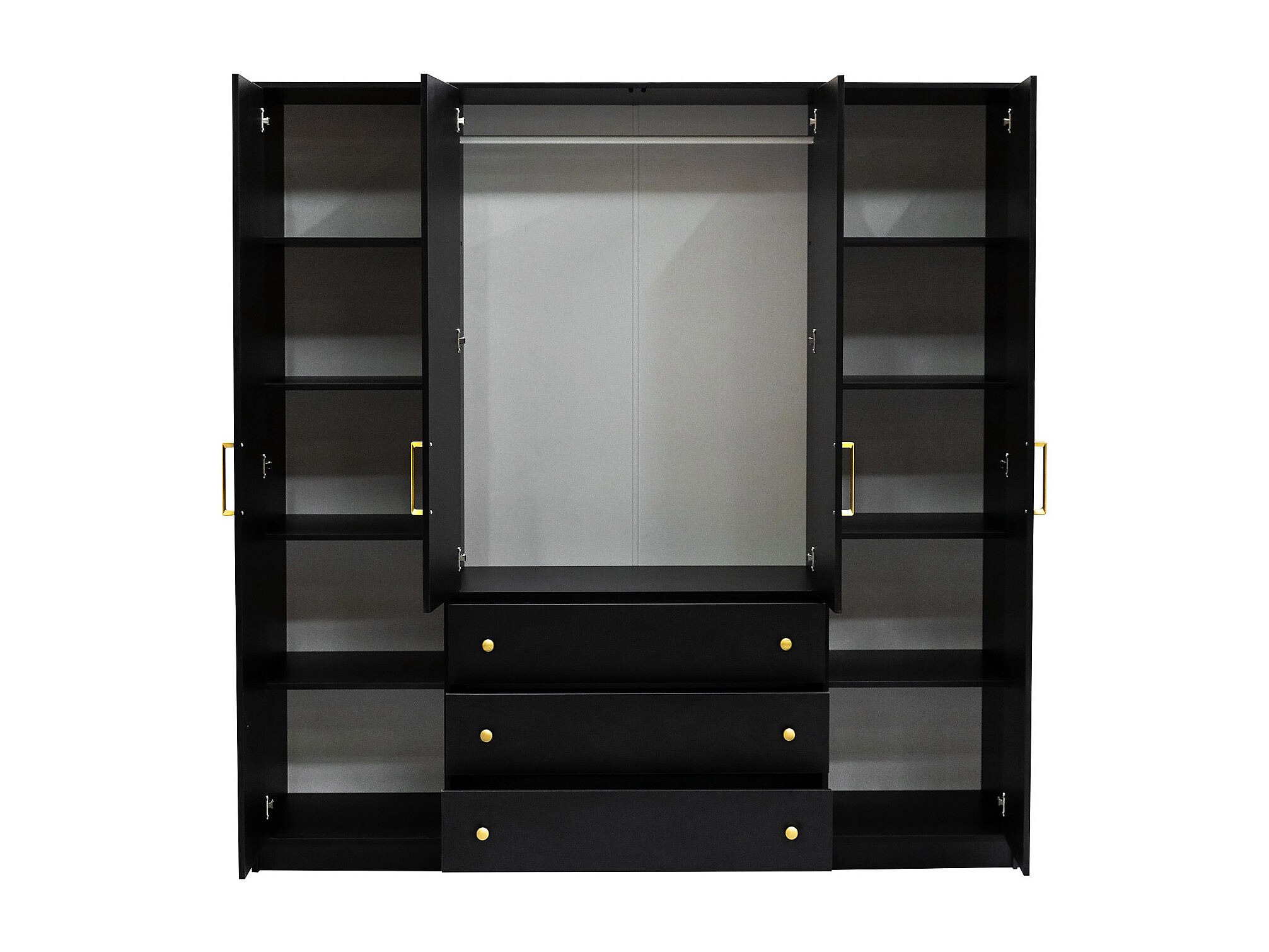 Armoire 4 portes et 3 tiroirs - Avec miroirs - L196 cm - Noir - LIZANDRO