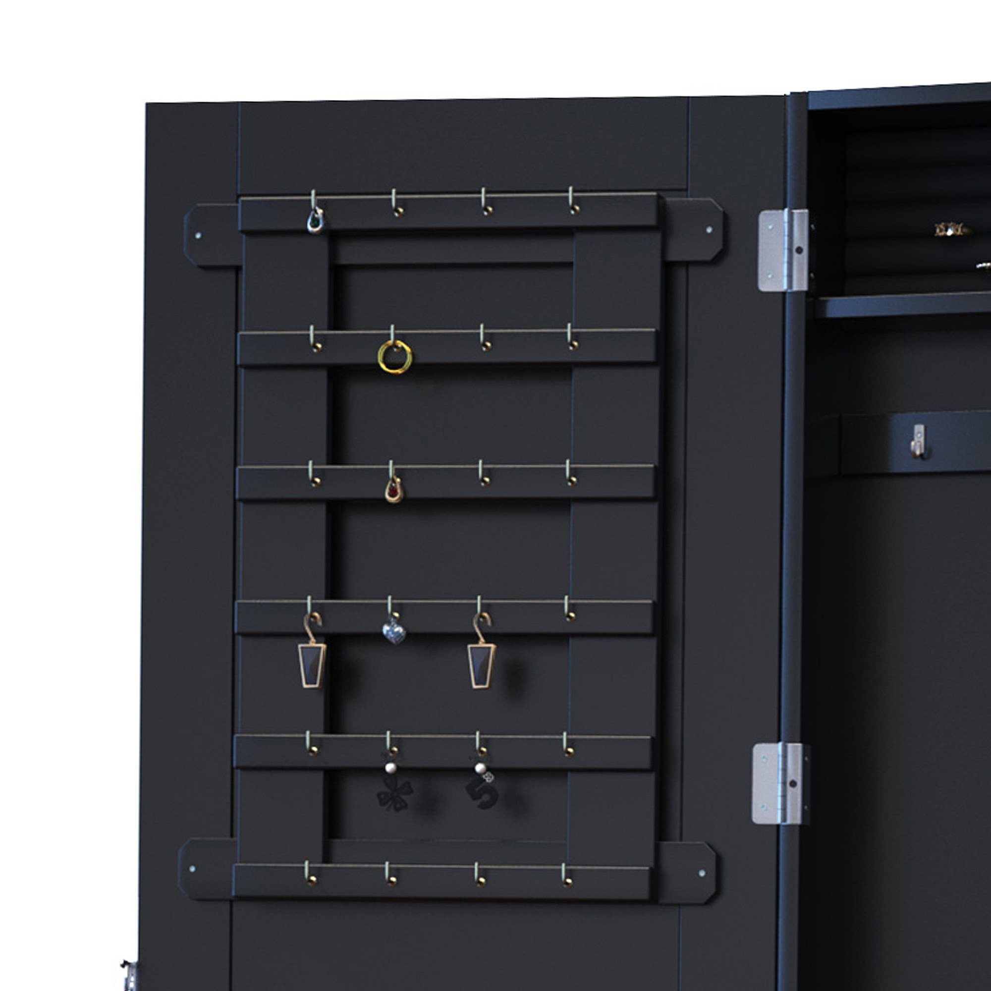 Armoire à bijoux multi-rangements design contemporain mural avec miroir 37L x 10l x 112H cm noire