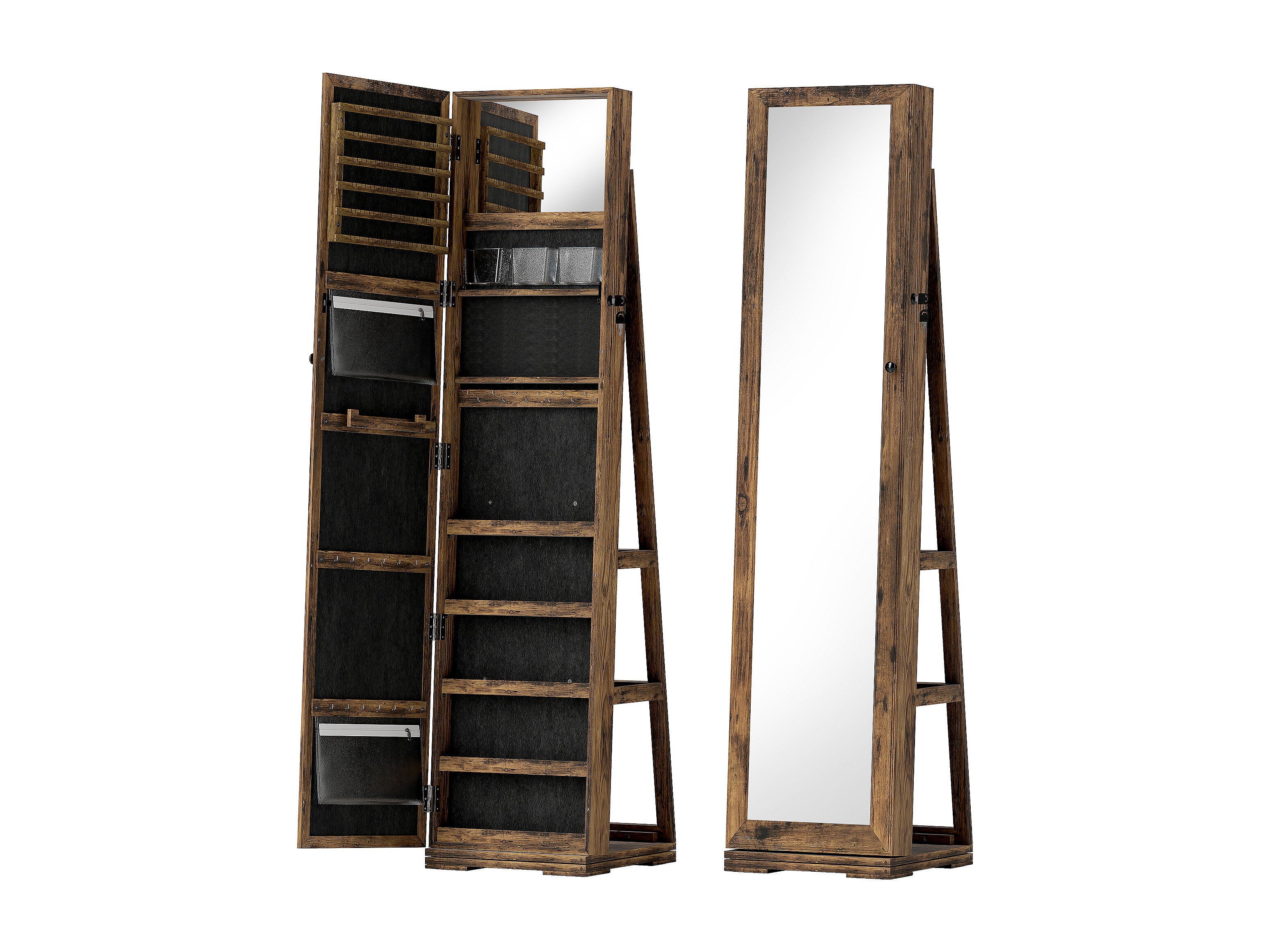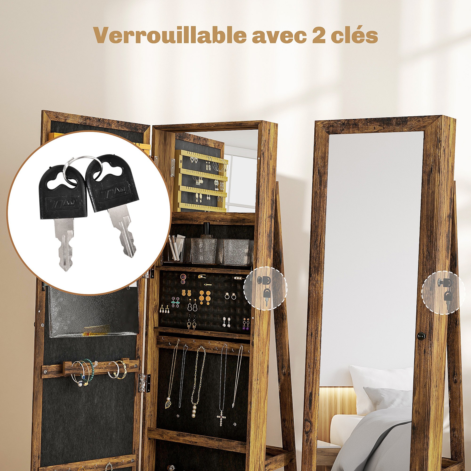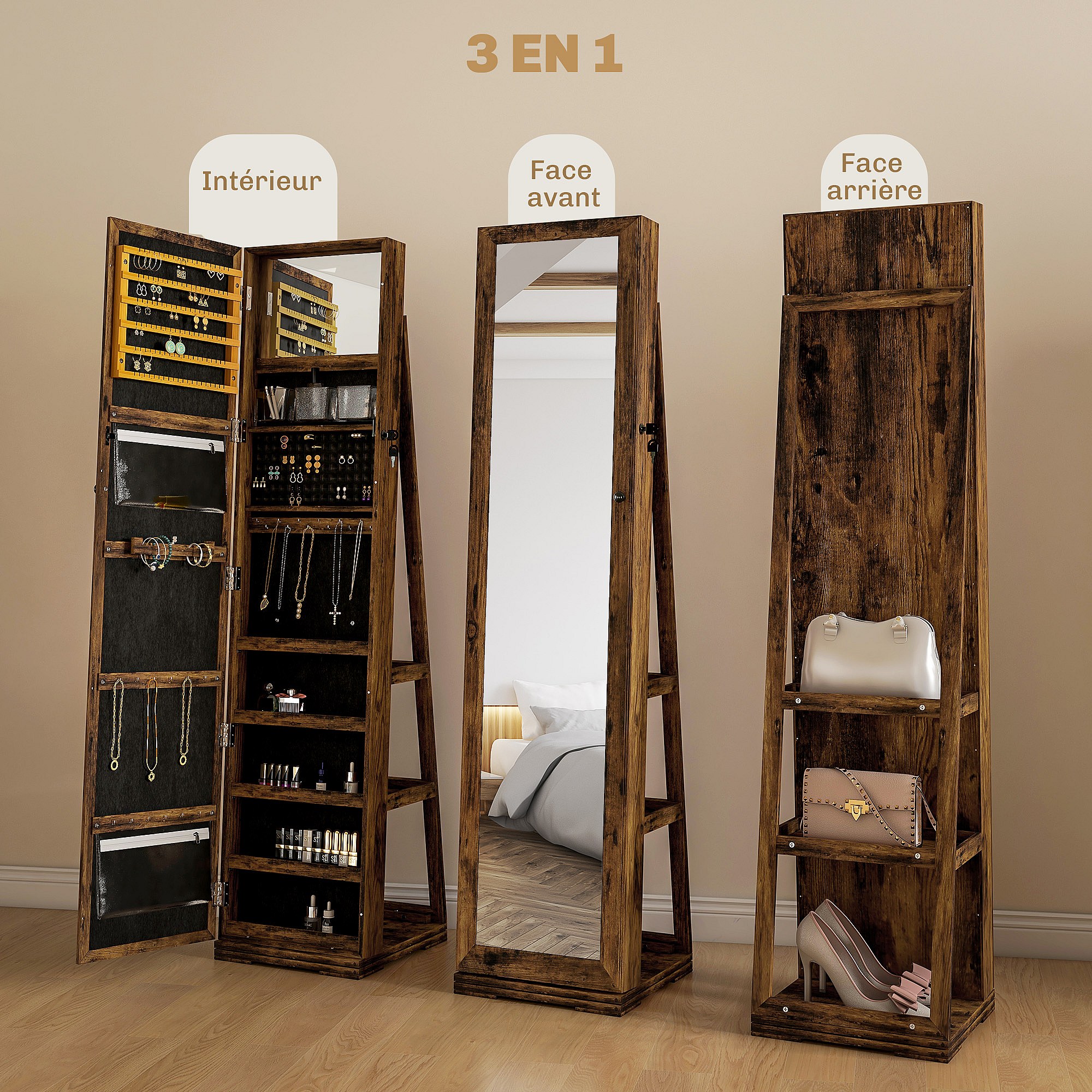 Armoire à bijoux pivotante verrouillable avec miroir - armoire bijoux multi-rangement - MDF effet bois vieilli