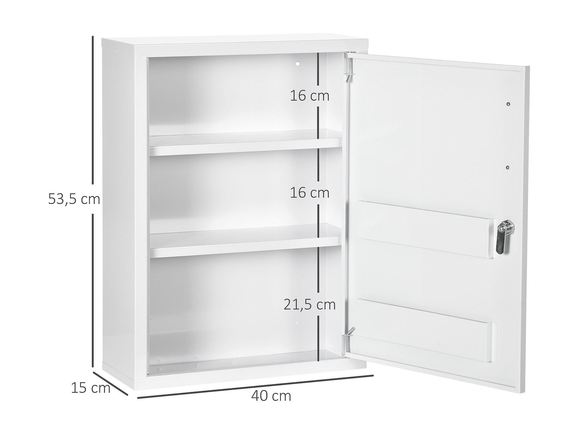 Armoire à pharmacie 2 étagères 3 niv. verrouillables dim. 40L x 15l x 53H cm 2 clés logo croix acier blanc