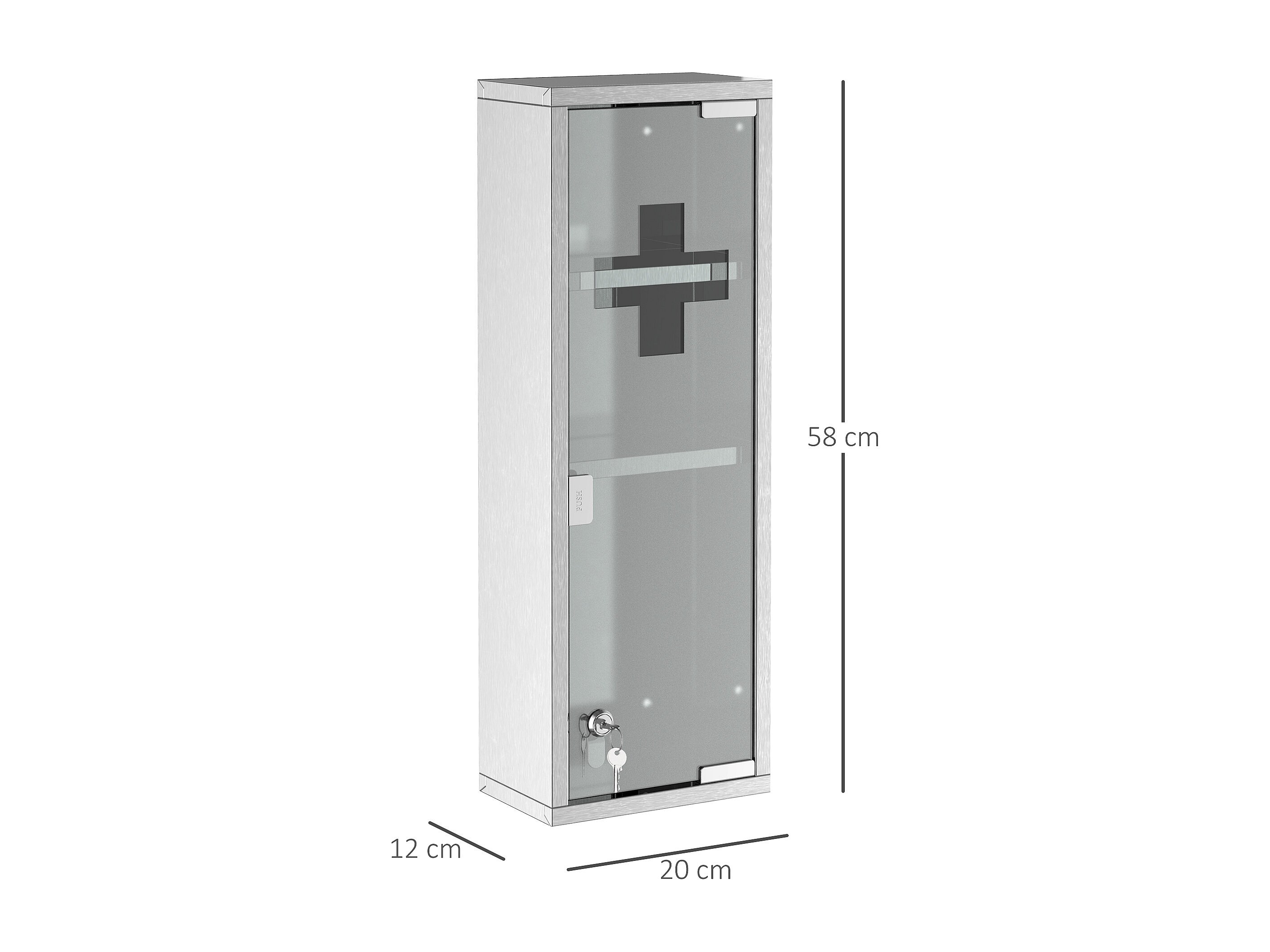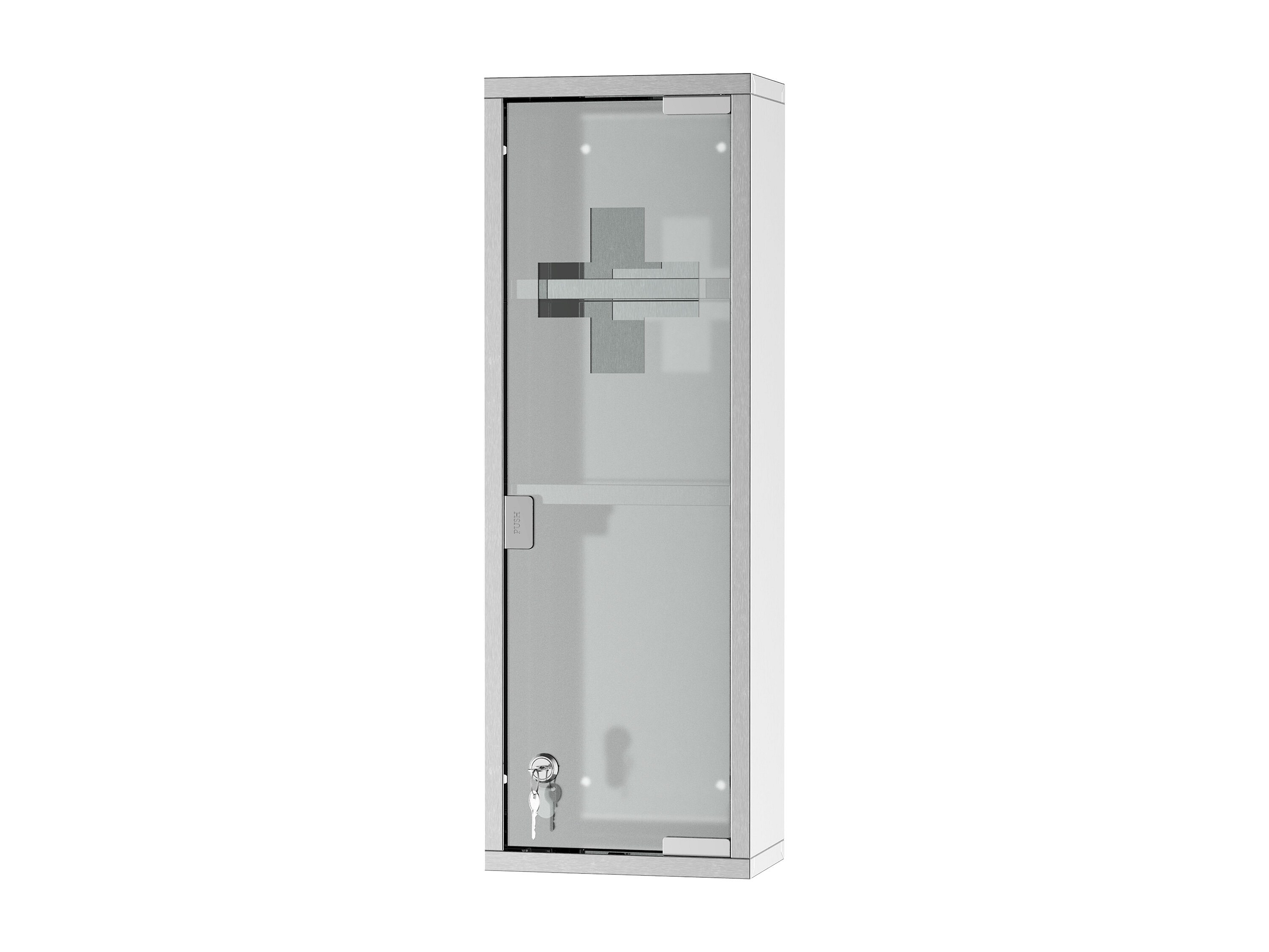 Armoire à pharmacie 2 étagères 3 niveaux verrouillable porte verre trempé dépoli logo croix 25L x 12l x 48H cm acier inox