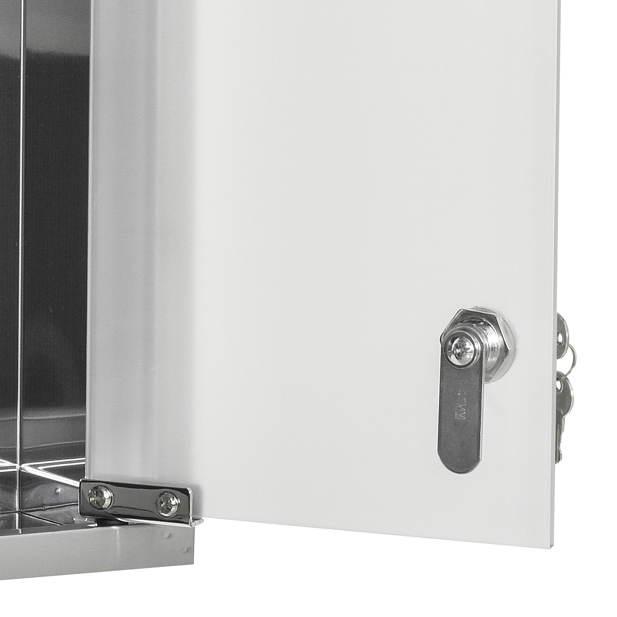 Armoire à pharmacie 2 étagères 3 niveaux 20L x 12l x 58H cm porte verre trempé symbole croix acier inox.