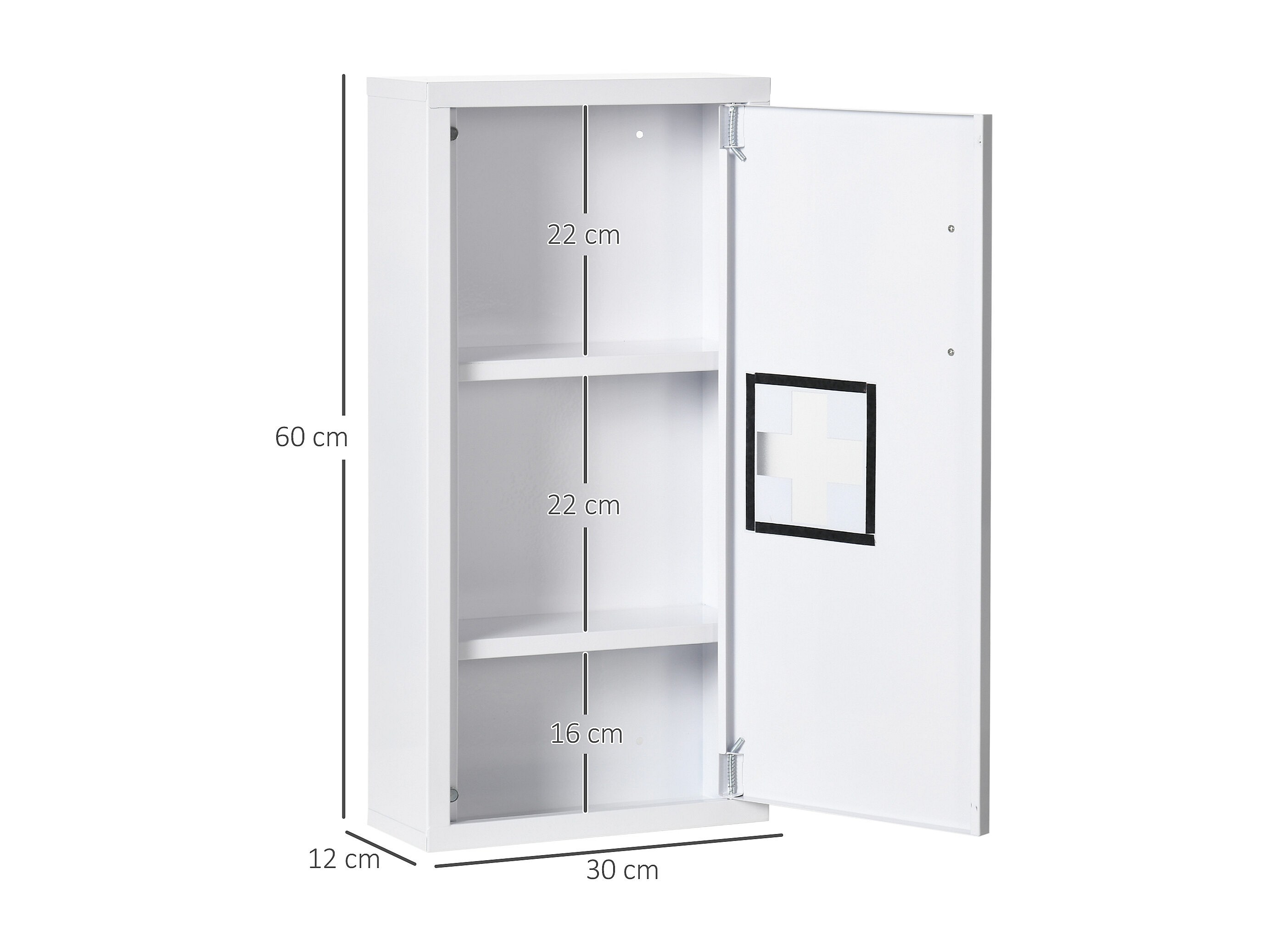 Armoire à pharmacie 2 étagères 3 niveaux dim. 30L x 12l x 60H cm logo croix transparent acier blanc