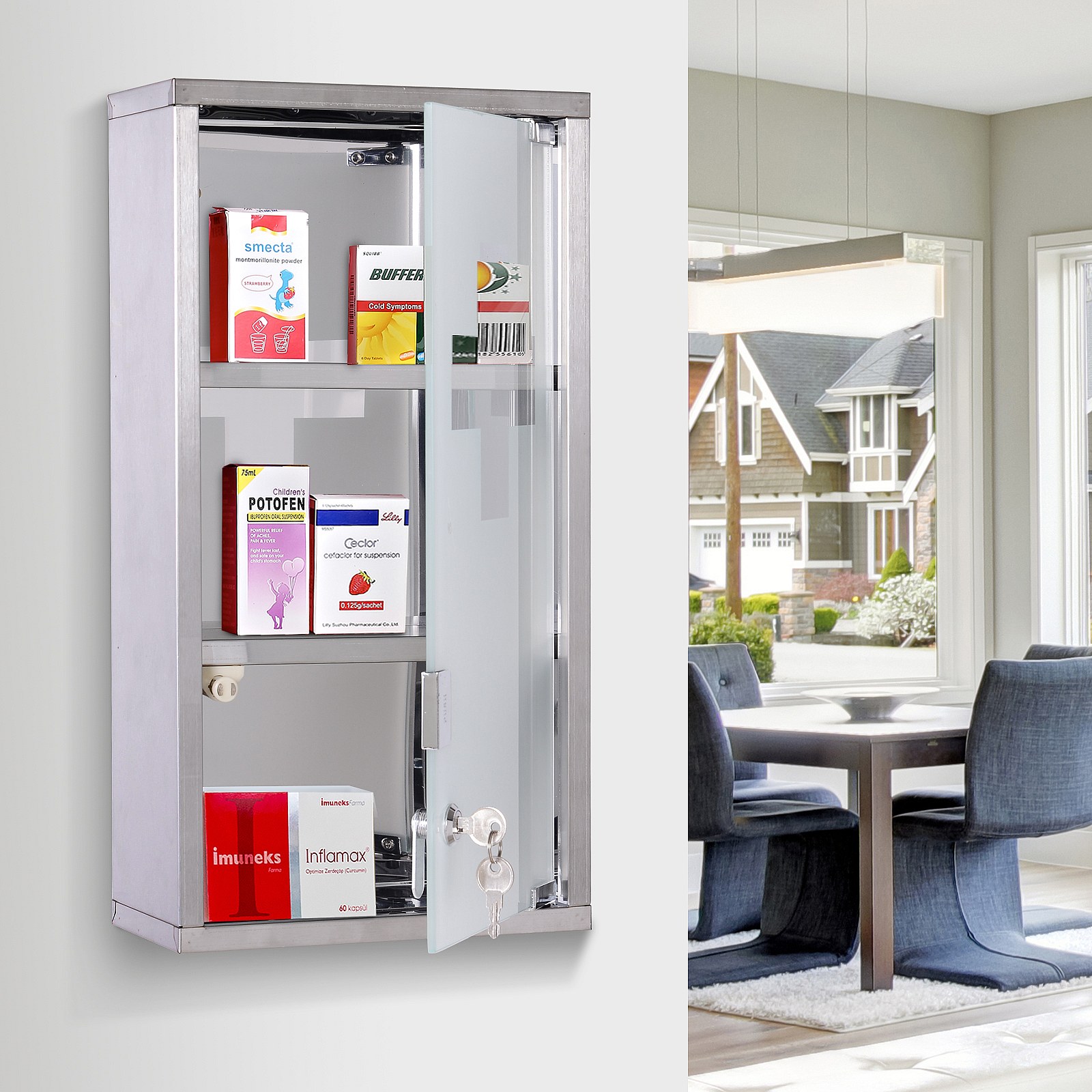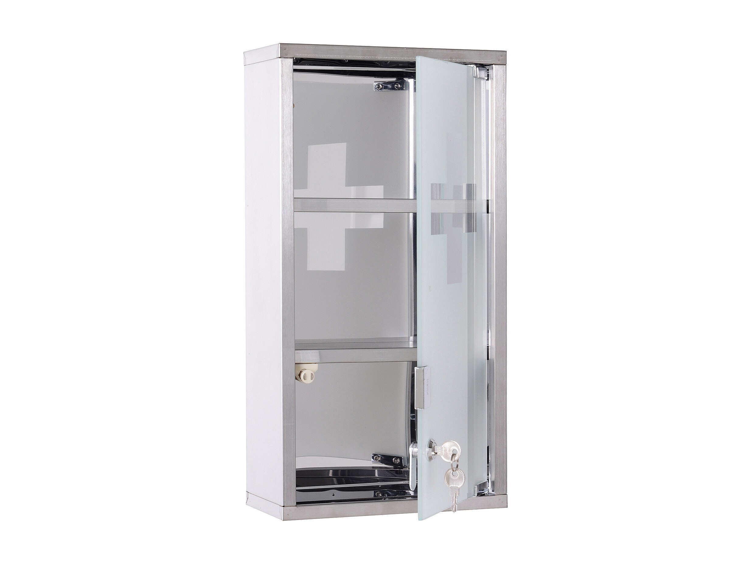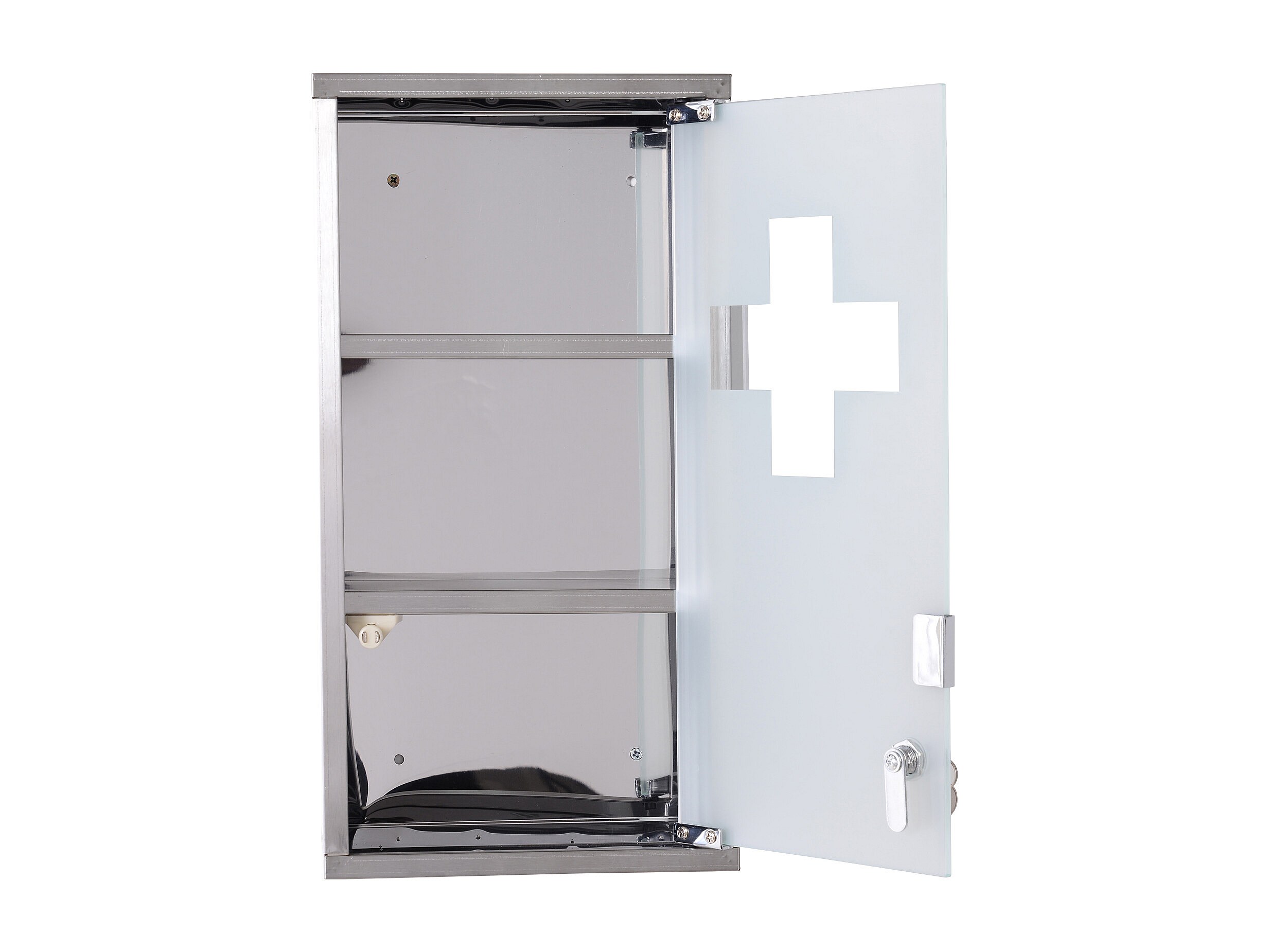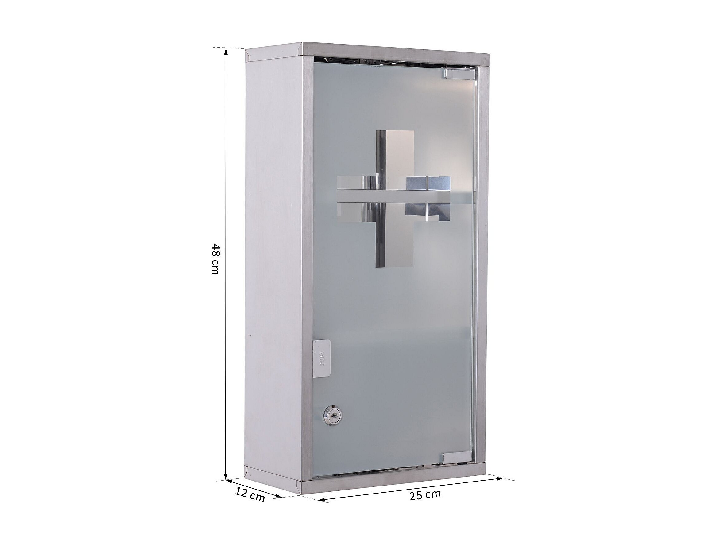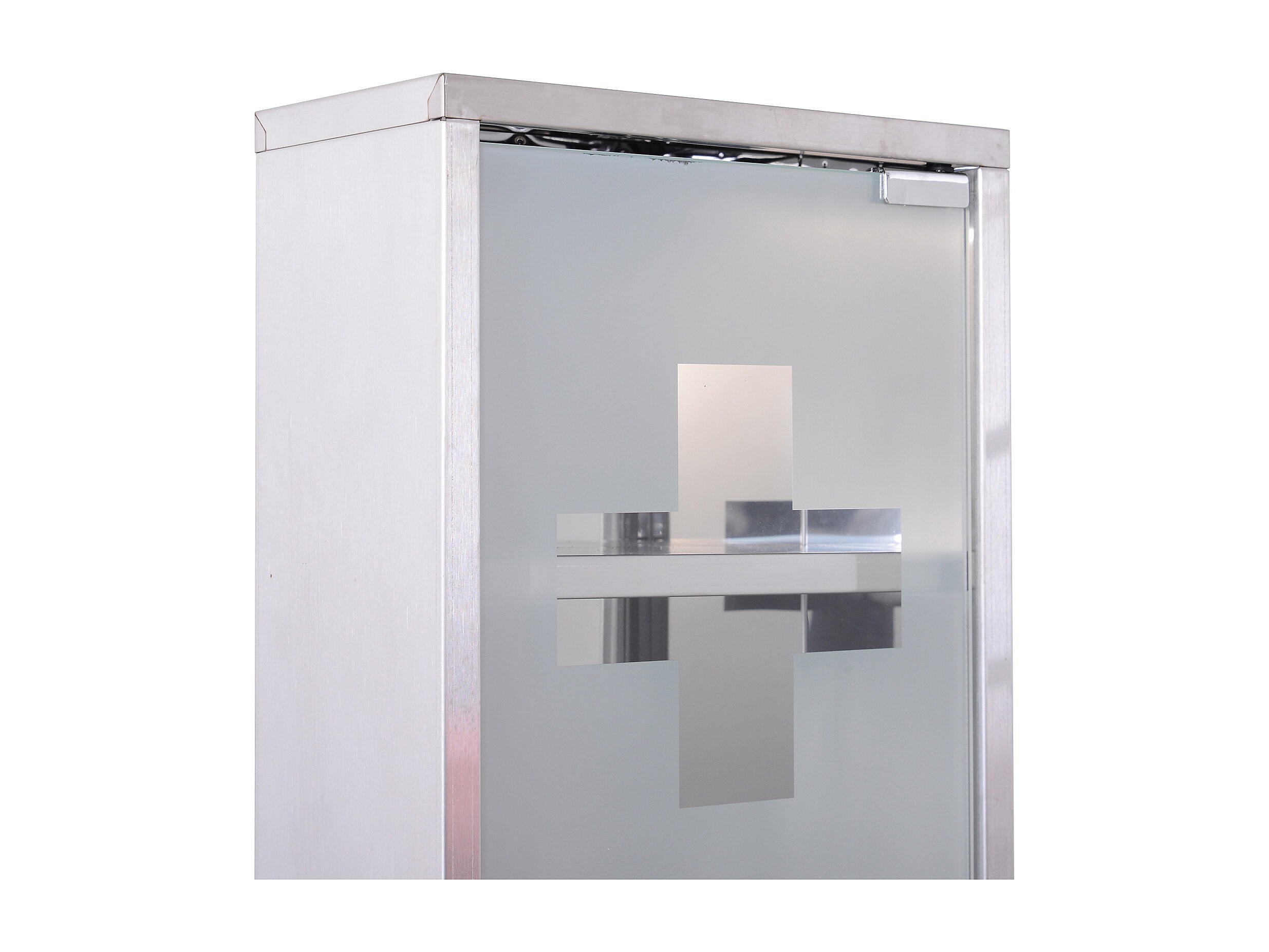 Armoire à pharmacie 2 étagères 3 niveaux verrouillable porte verre trempé dépoli logo croix 25L x 12l x 48H cm acier inox