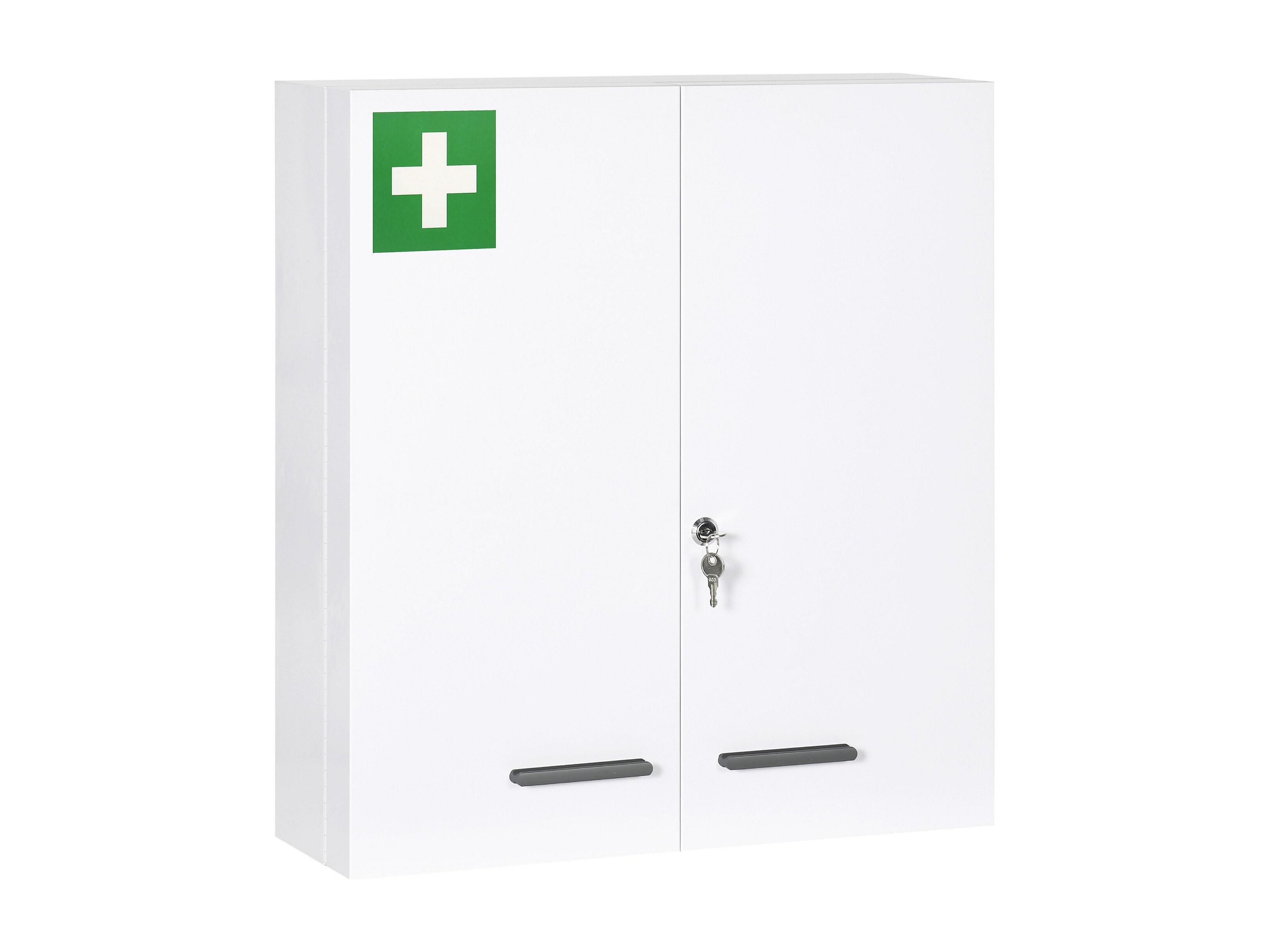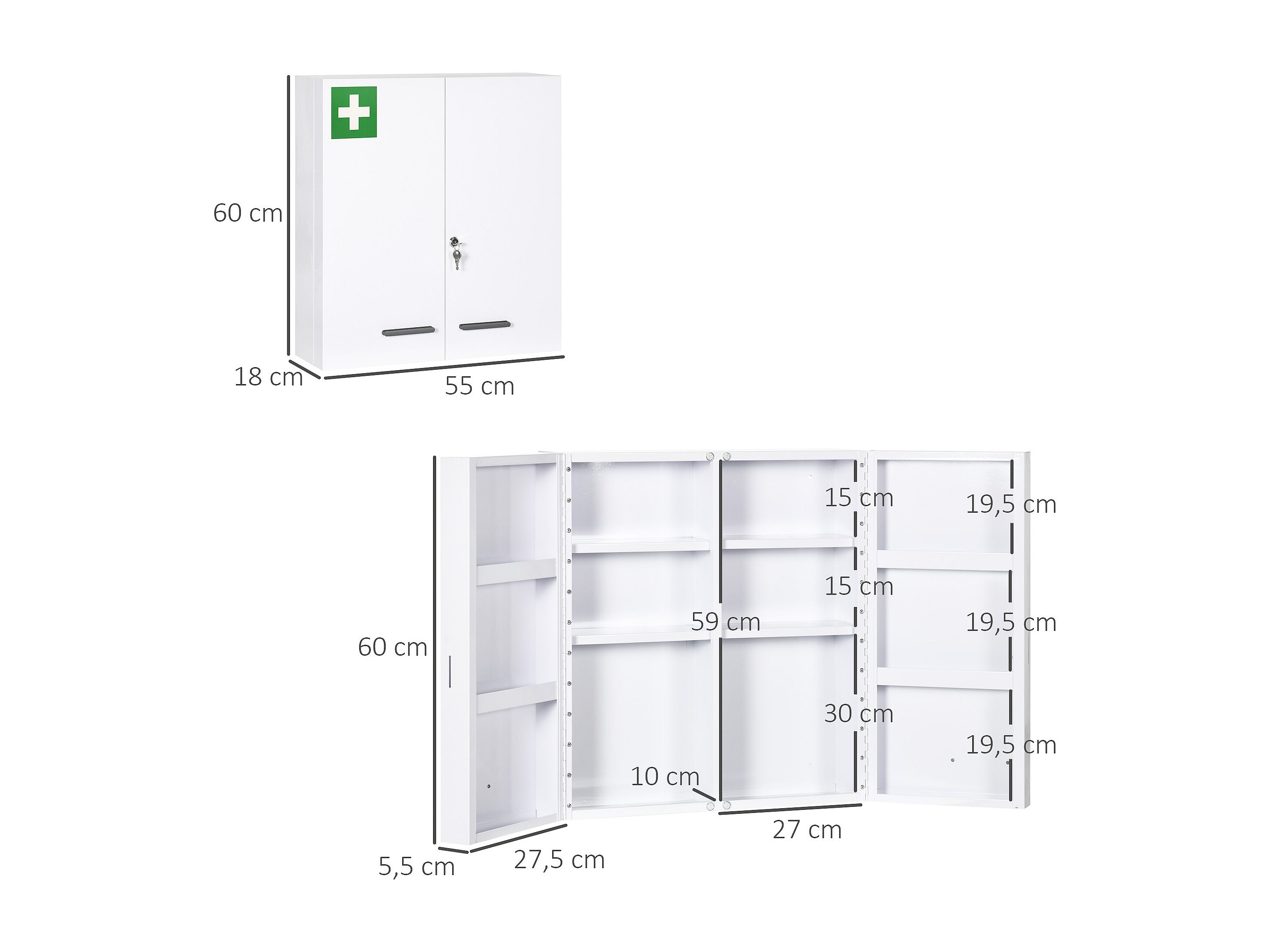 Armoire à pharmacie murale verrouillable 2 portes 6 étagères 6 compartiments dim. 55 x 18 x 60 cm acier blanc