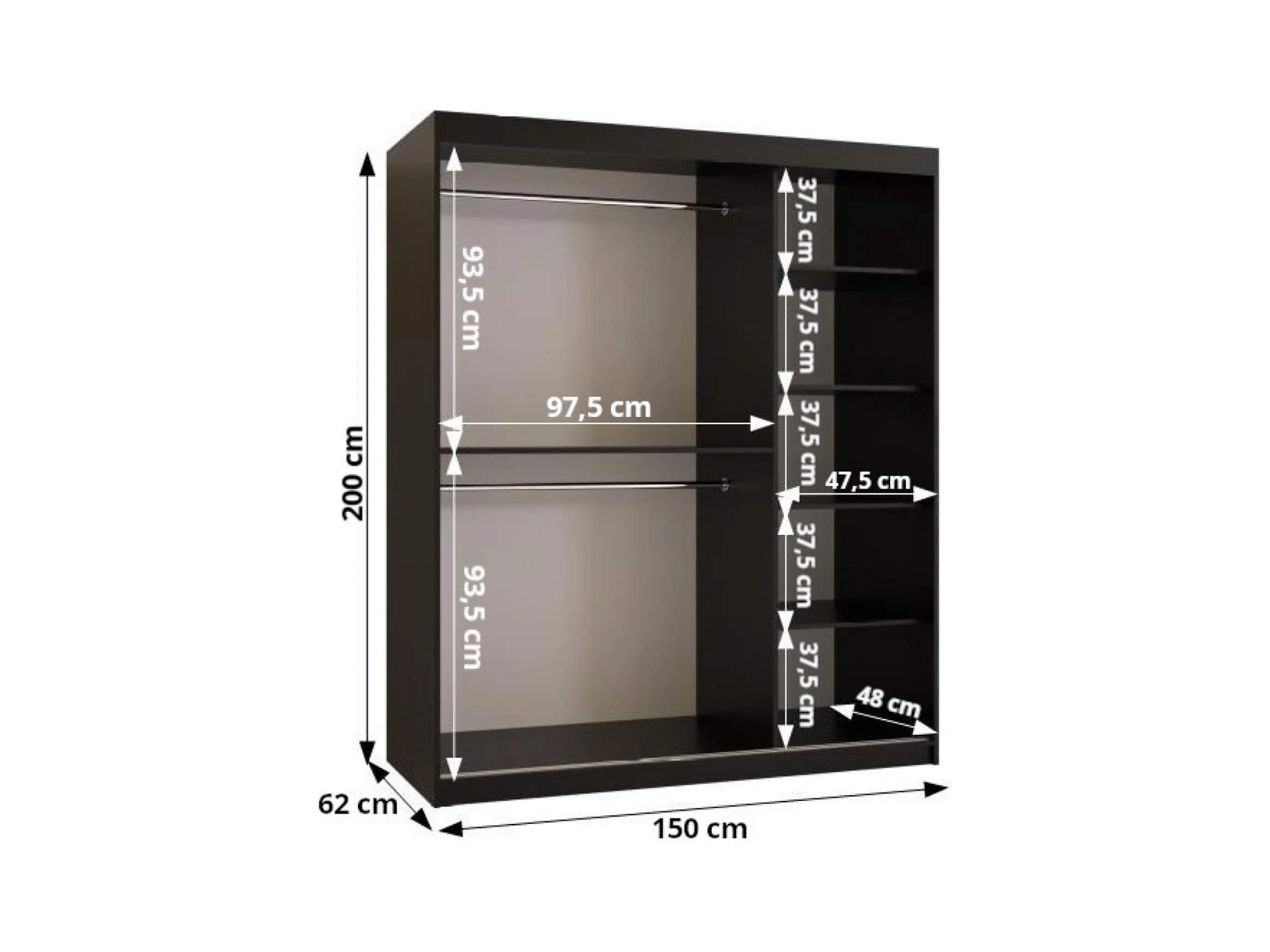 Armoire à portes coulissantes Ramiro 1 200/150/62 (Noir)
