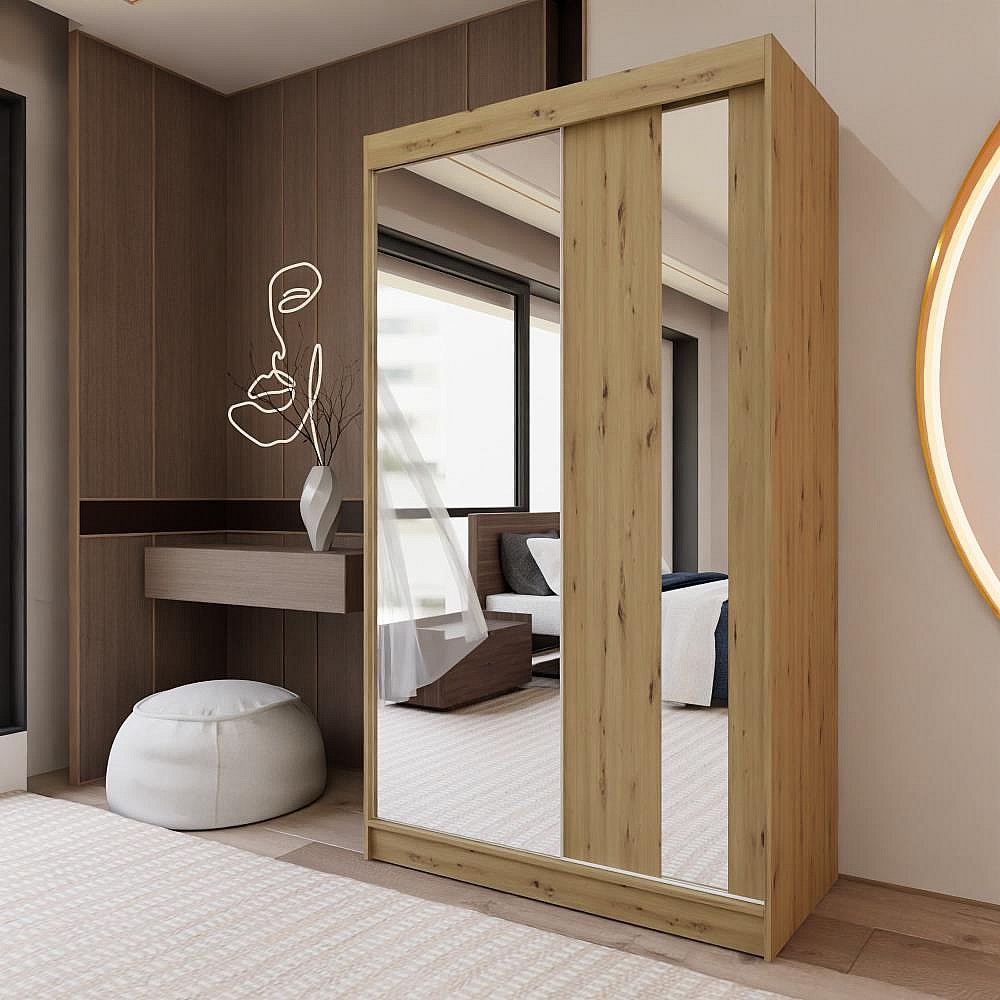 ARMOIRE A PORTES FERMÉES Gaja 120/216/61 chêne Artisan avec miroir