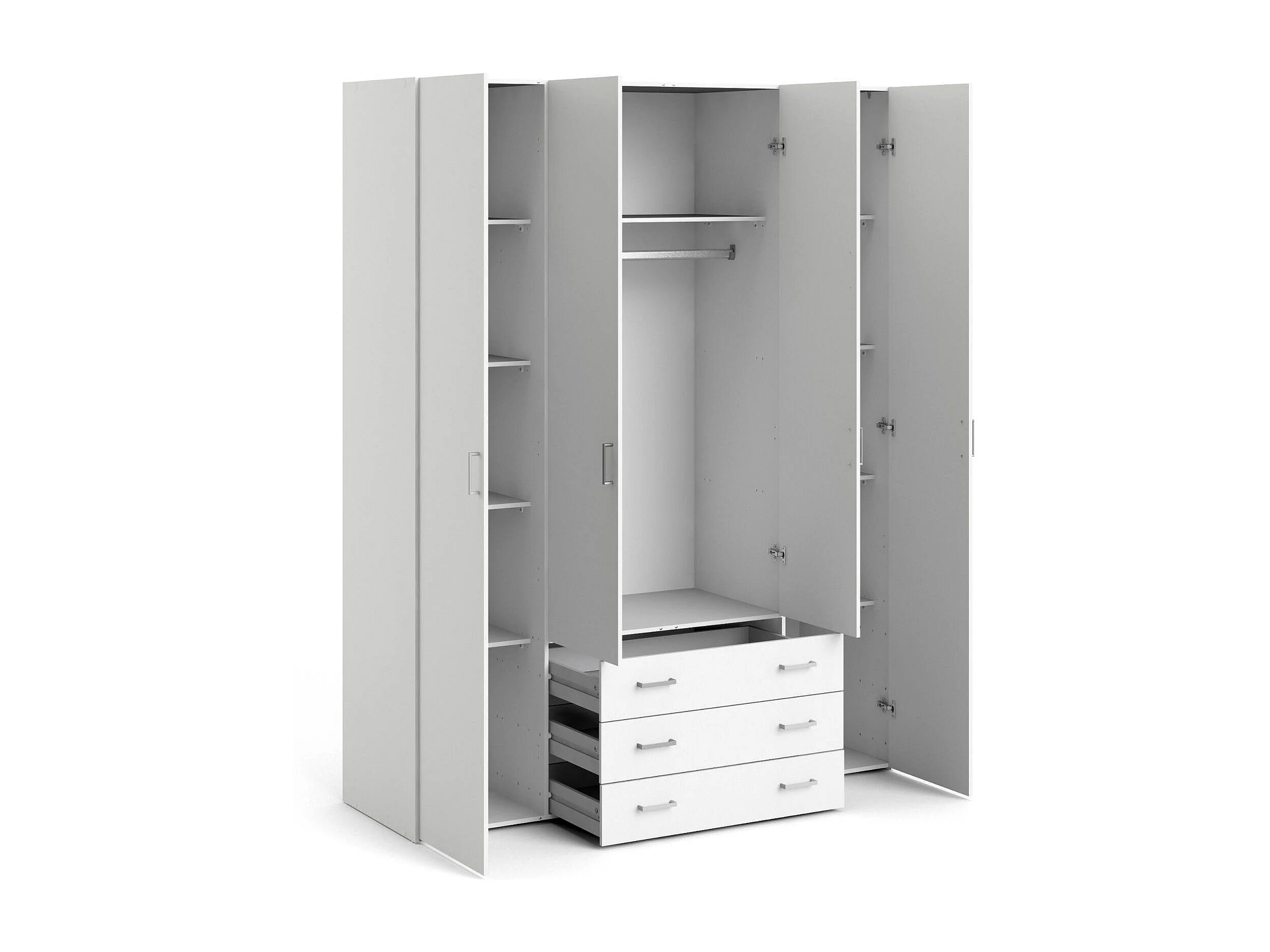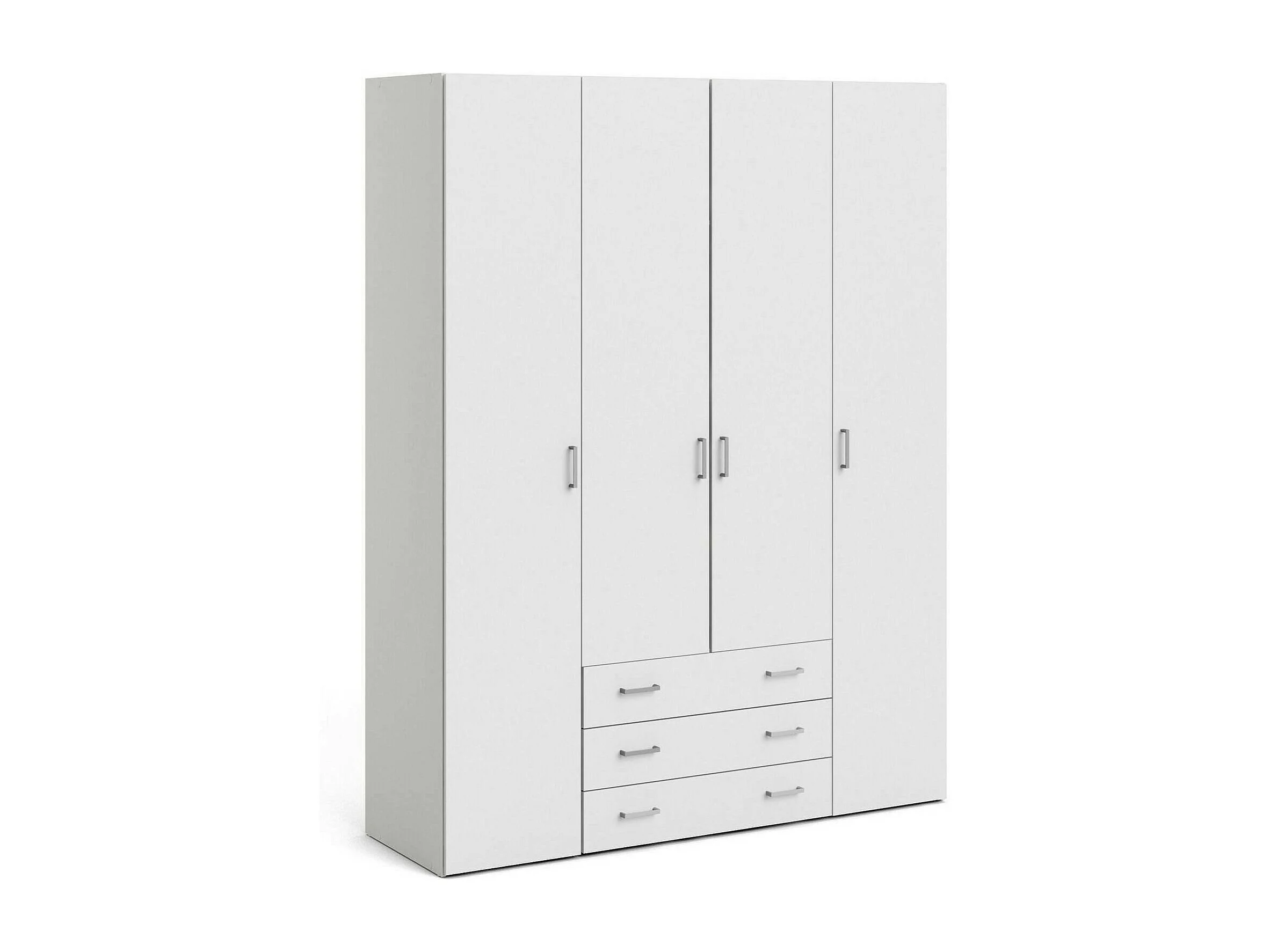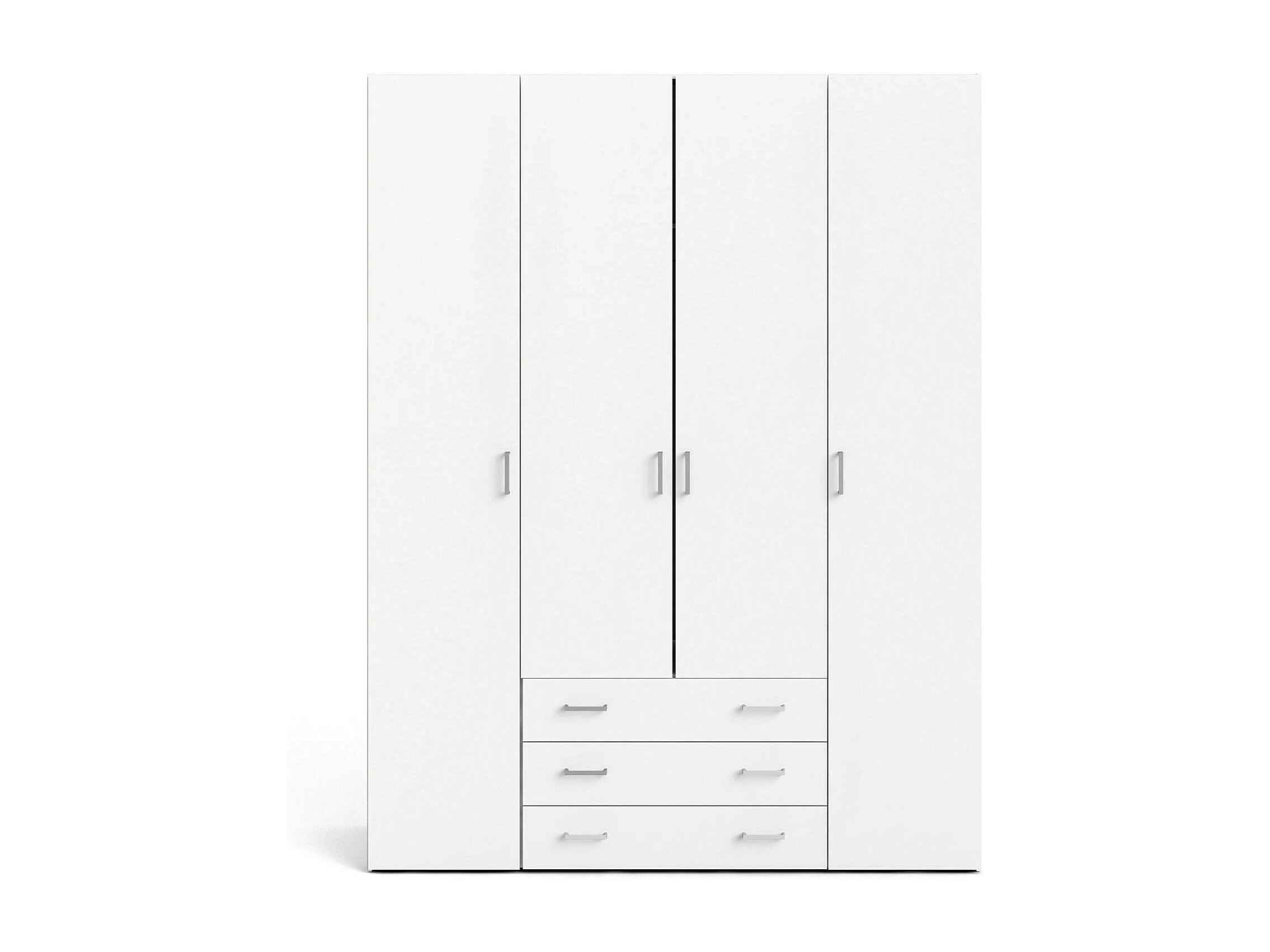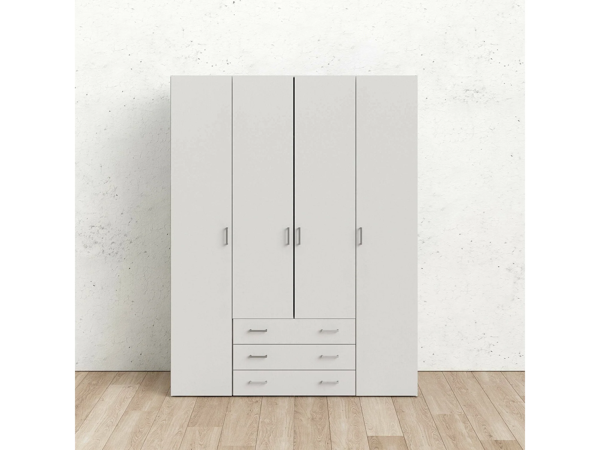 Armoire à quatre portes et trois tiroirs, couleur blanche, Dimensions 154 x 200 x 49 cm