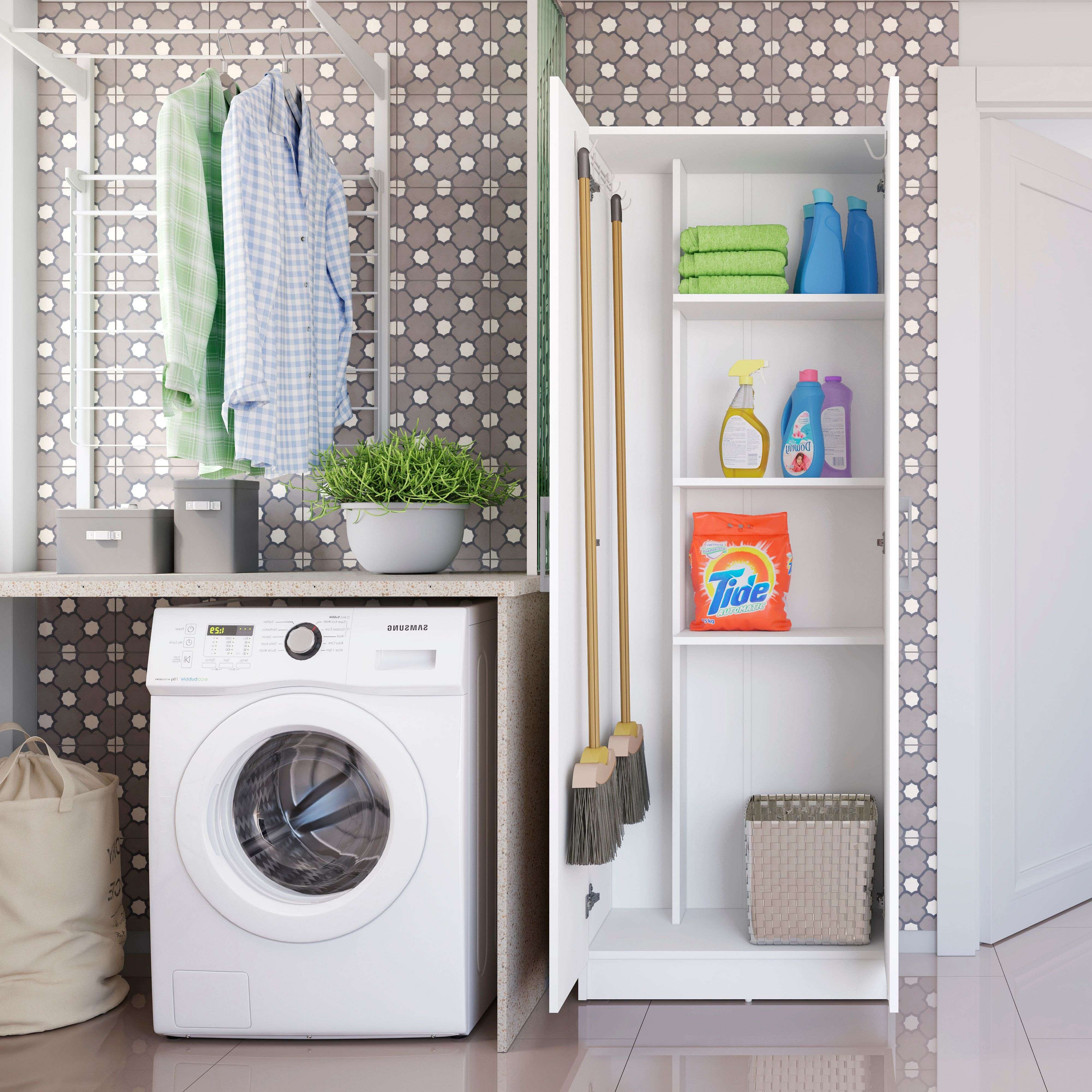 Armoire auxiliaire polyvalente avec 2 portes pliantes, blanc mat, 61 x 170 cm