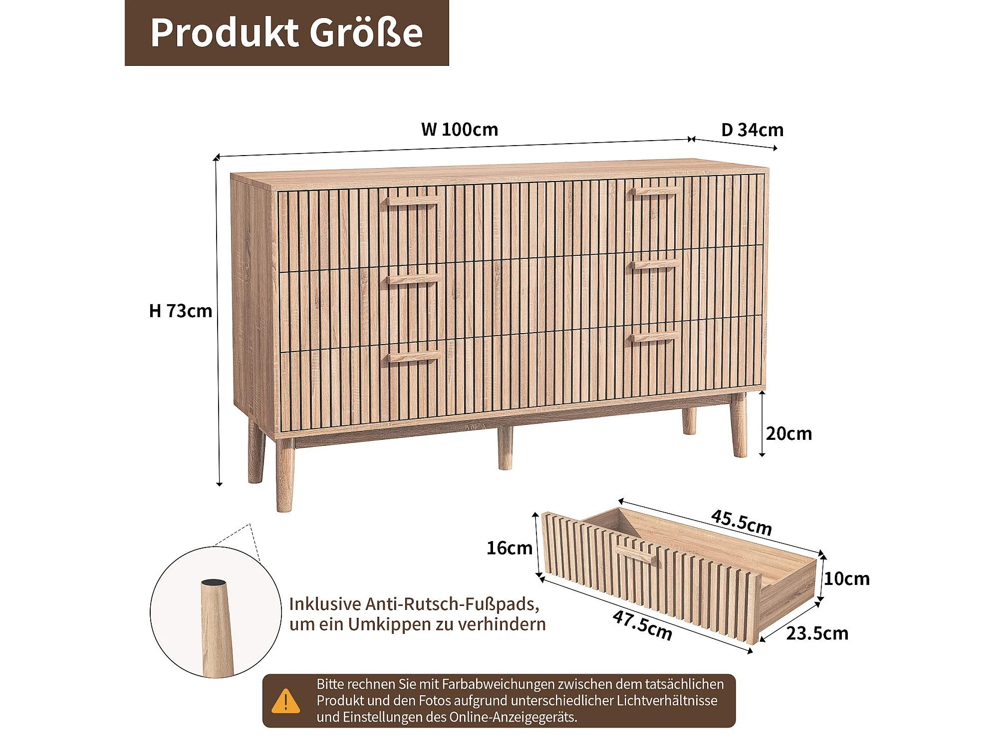 Armoire avec 6 tiroirs, 100 x 34 x 73 cm Convient au salon, à la chambre à coucher, à la cuisine