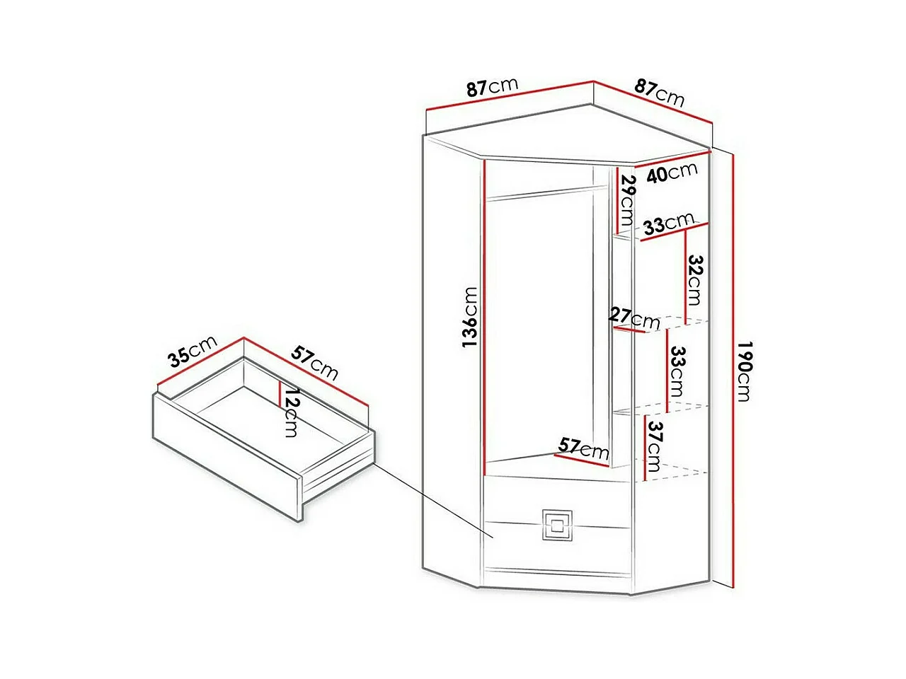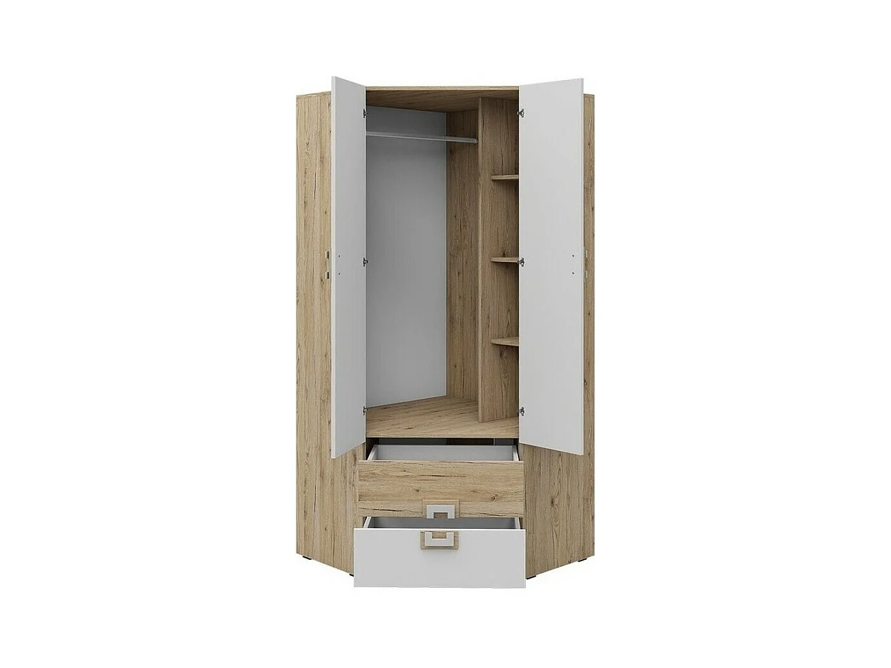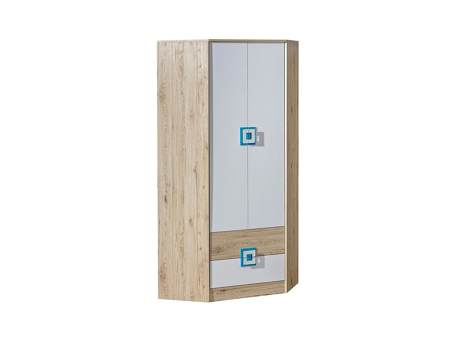 Armoire d'angle Tolfere 102, Blanc|Turquoise|Chêne clair, 190x87x87cm