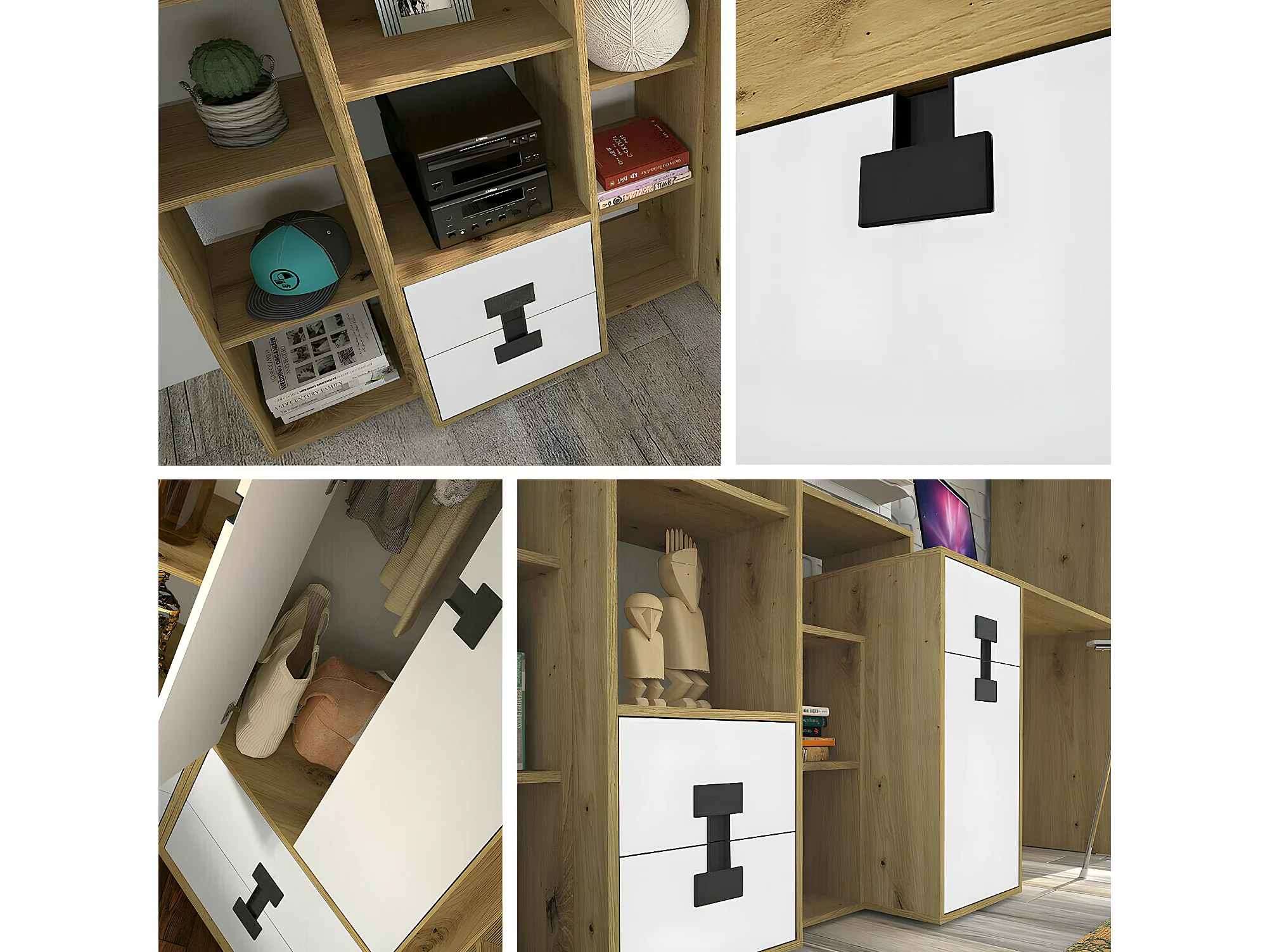 Armoire d'angle Florevi 114, Mat blanc|Chêne Artisan, 191x88x88cm, Nombre d'étagères: 3