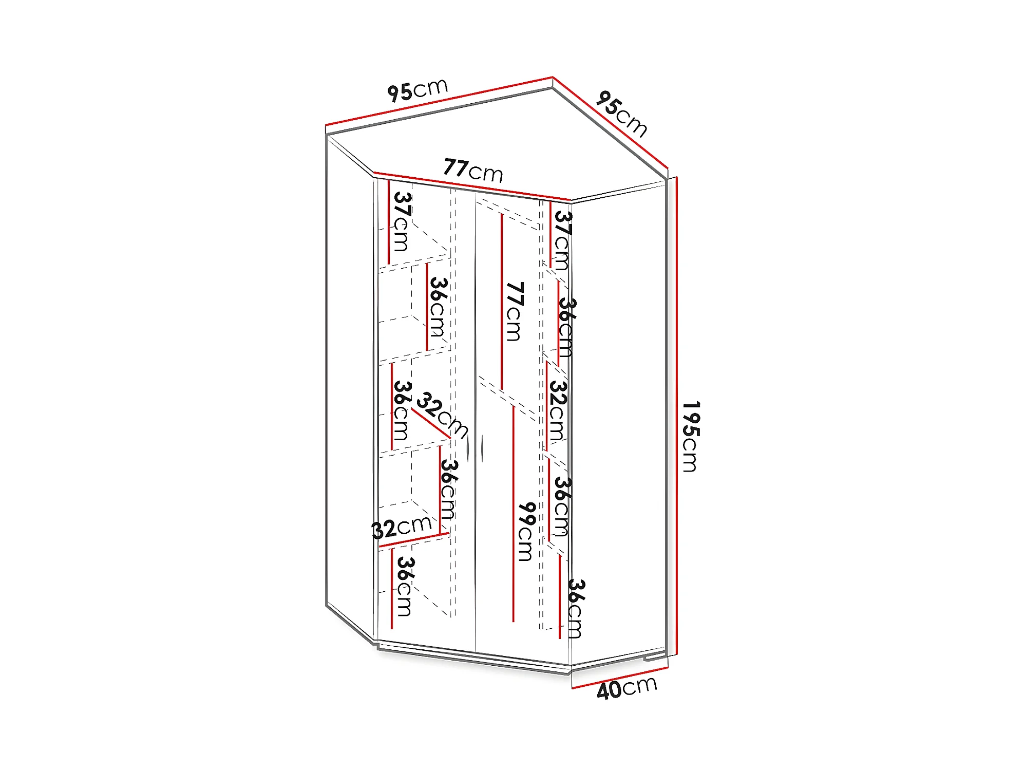 Armoire d'angle Orlveno 100, Chêne Artisan|Gris, 195x95x95cm, Nombre d'étagères: 8