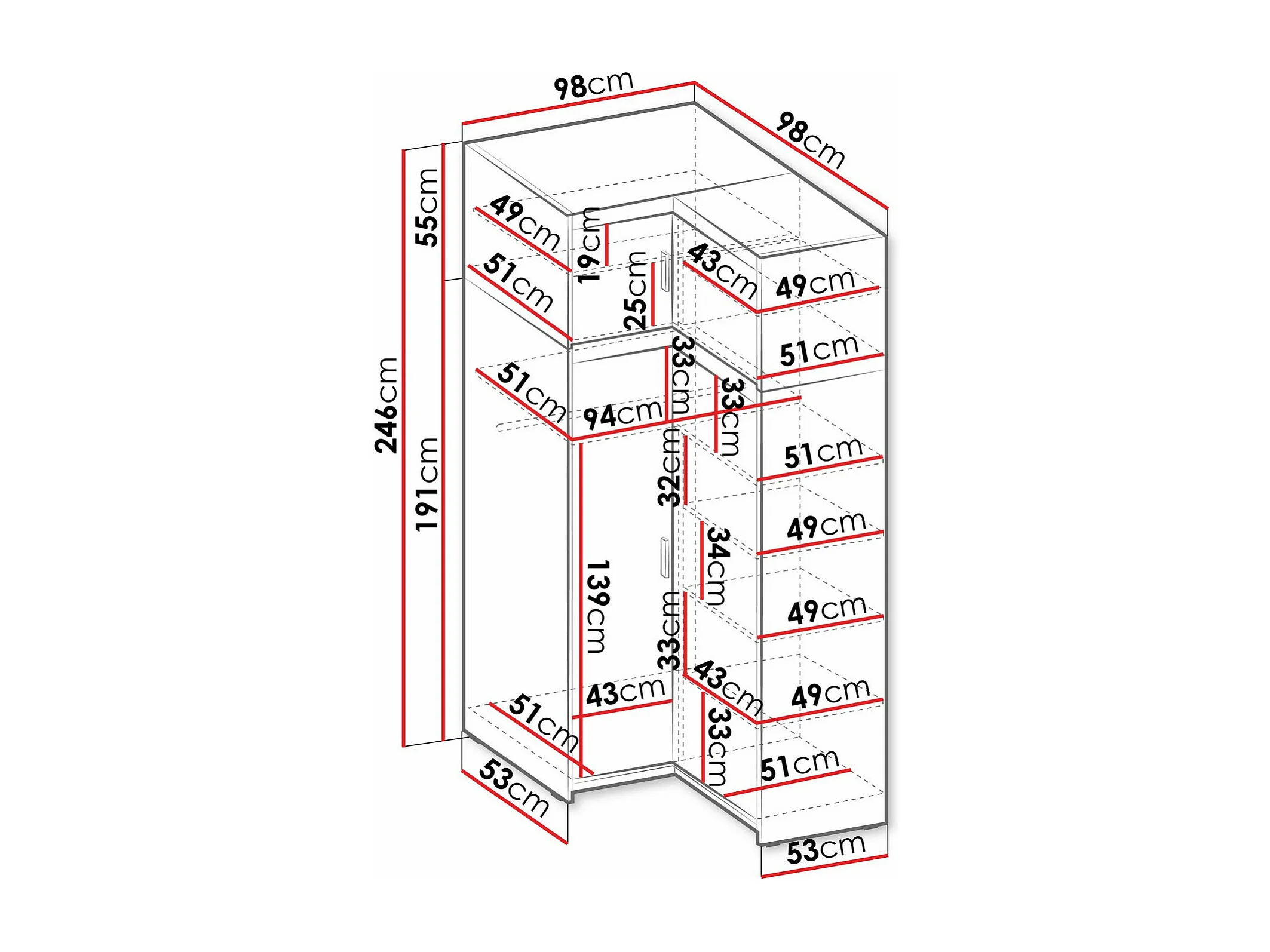 Armoire d'angle Novduni 121, Sonoma chêne, 191x98x98cm