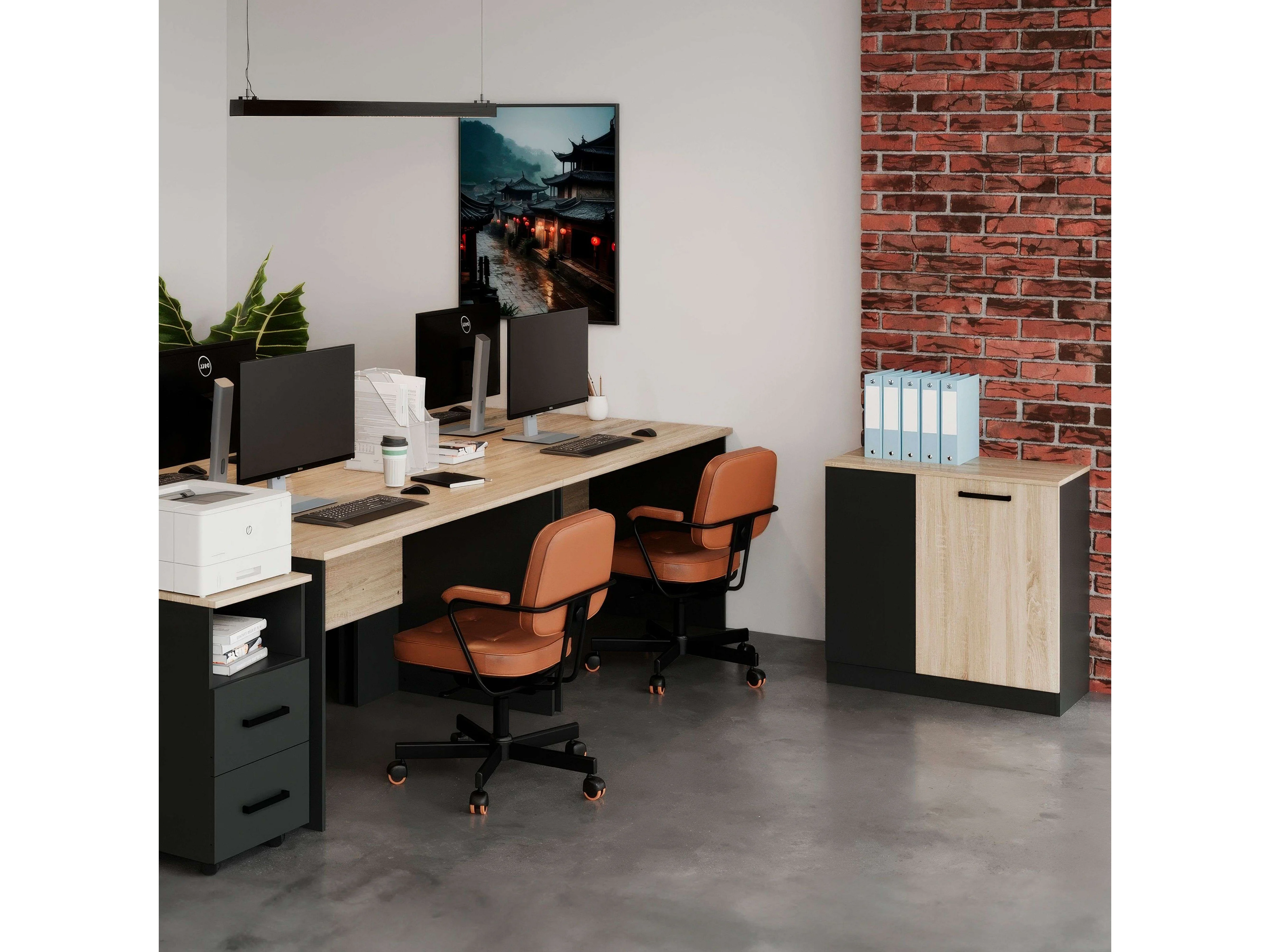 Armoire auxiliaire de bureau Blacky 2 portes style industriel 80 x 116 x 40 cm