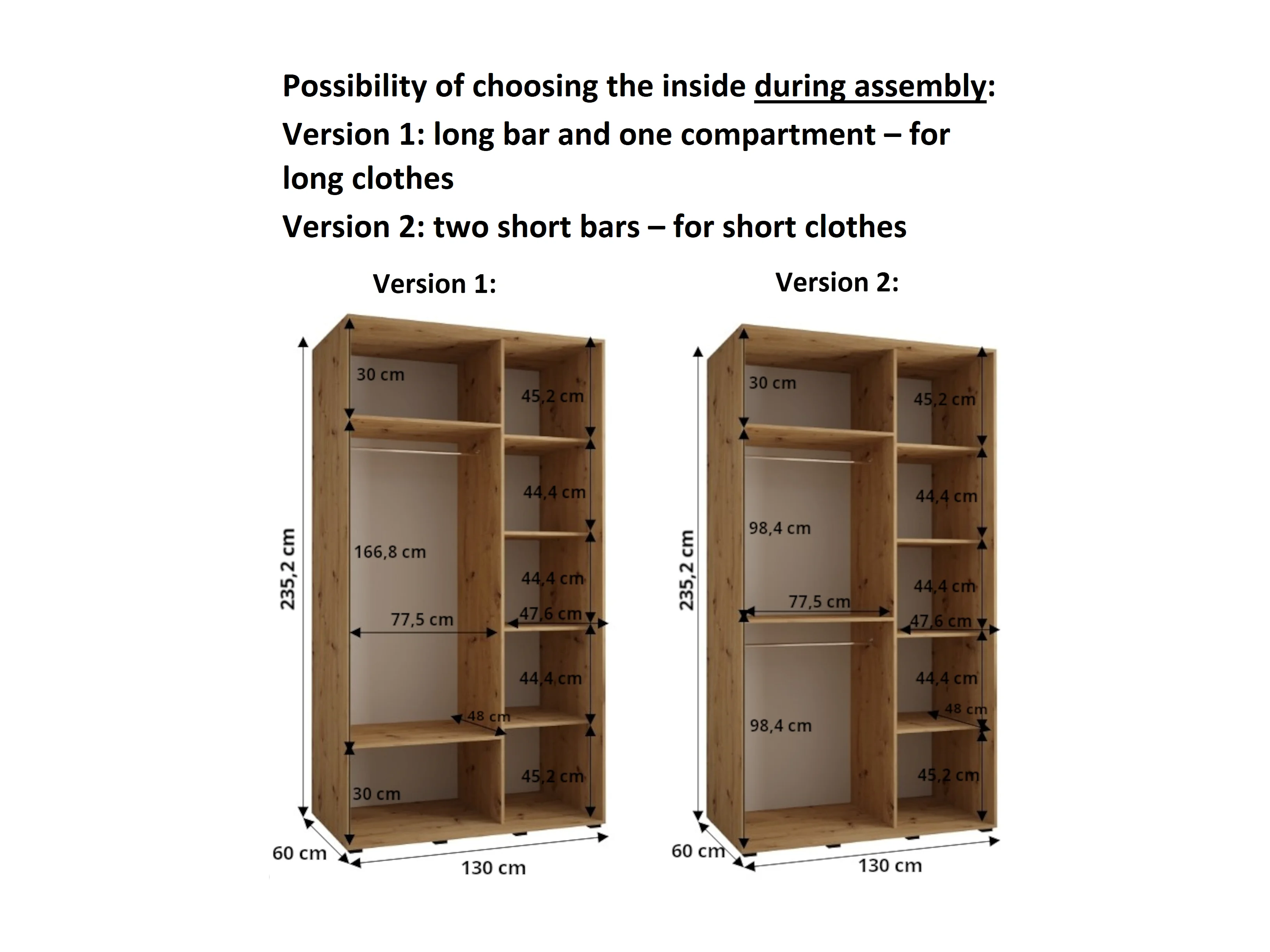 ARMOIRE DAVOS 7 À PORTES COULISSANTES 235,2/130/60 2 portes (Artisan/Artisan/Noir)