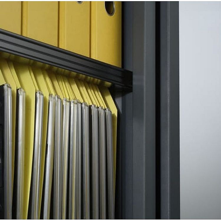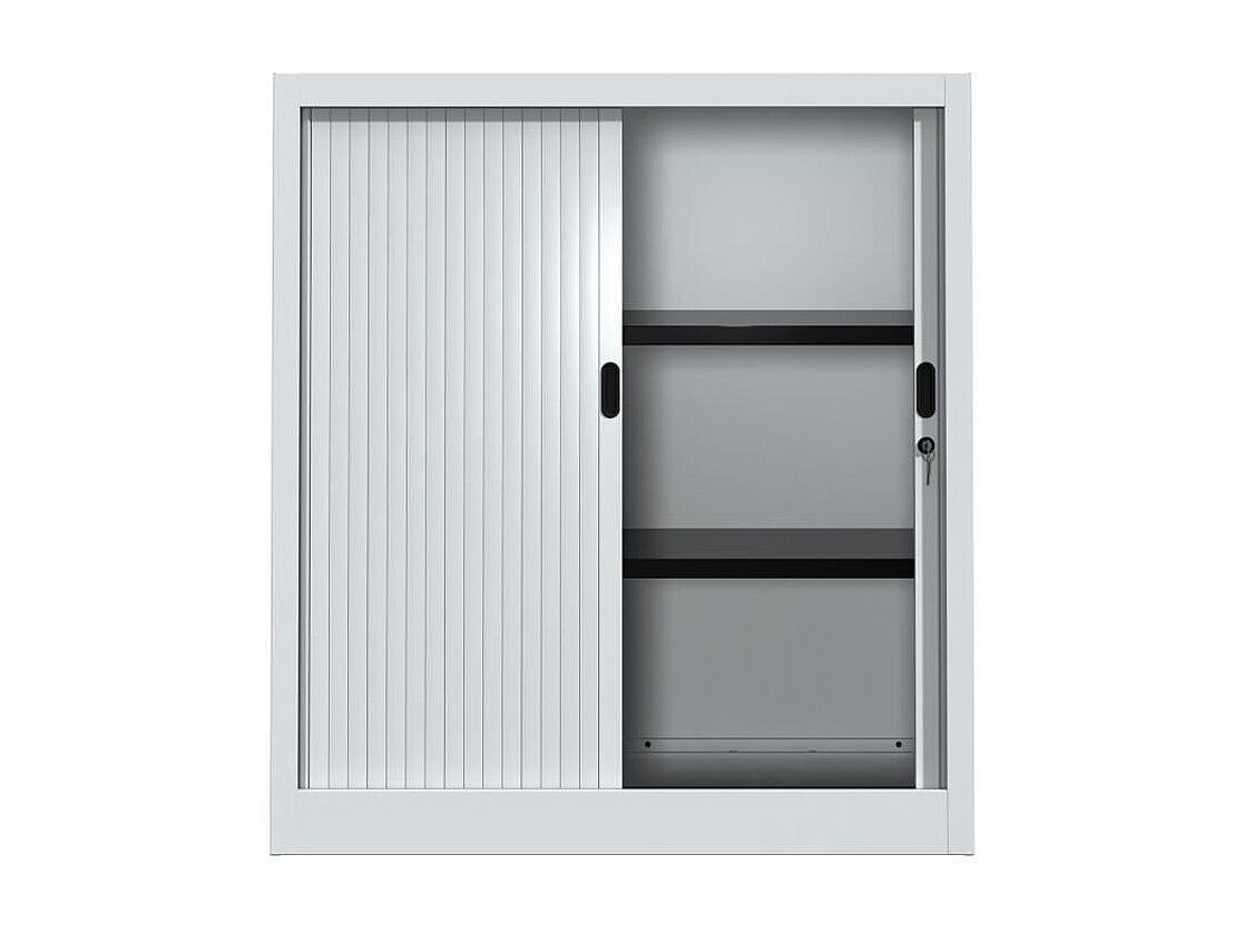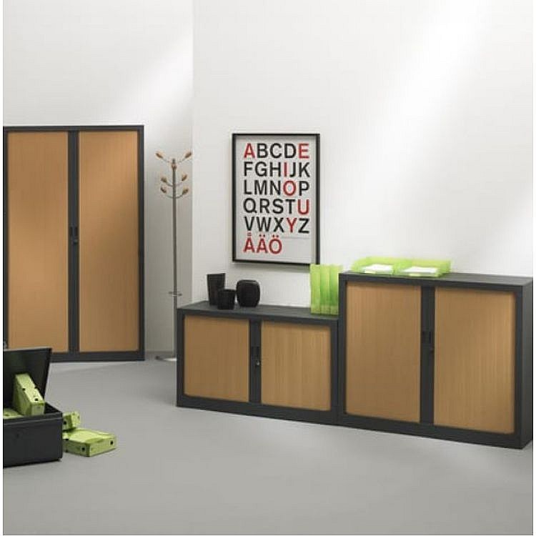 Armoire de bureau à rideaux anthracite 2 portes coulissantes hêtre Klass L90xH100xP45