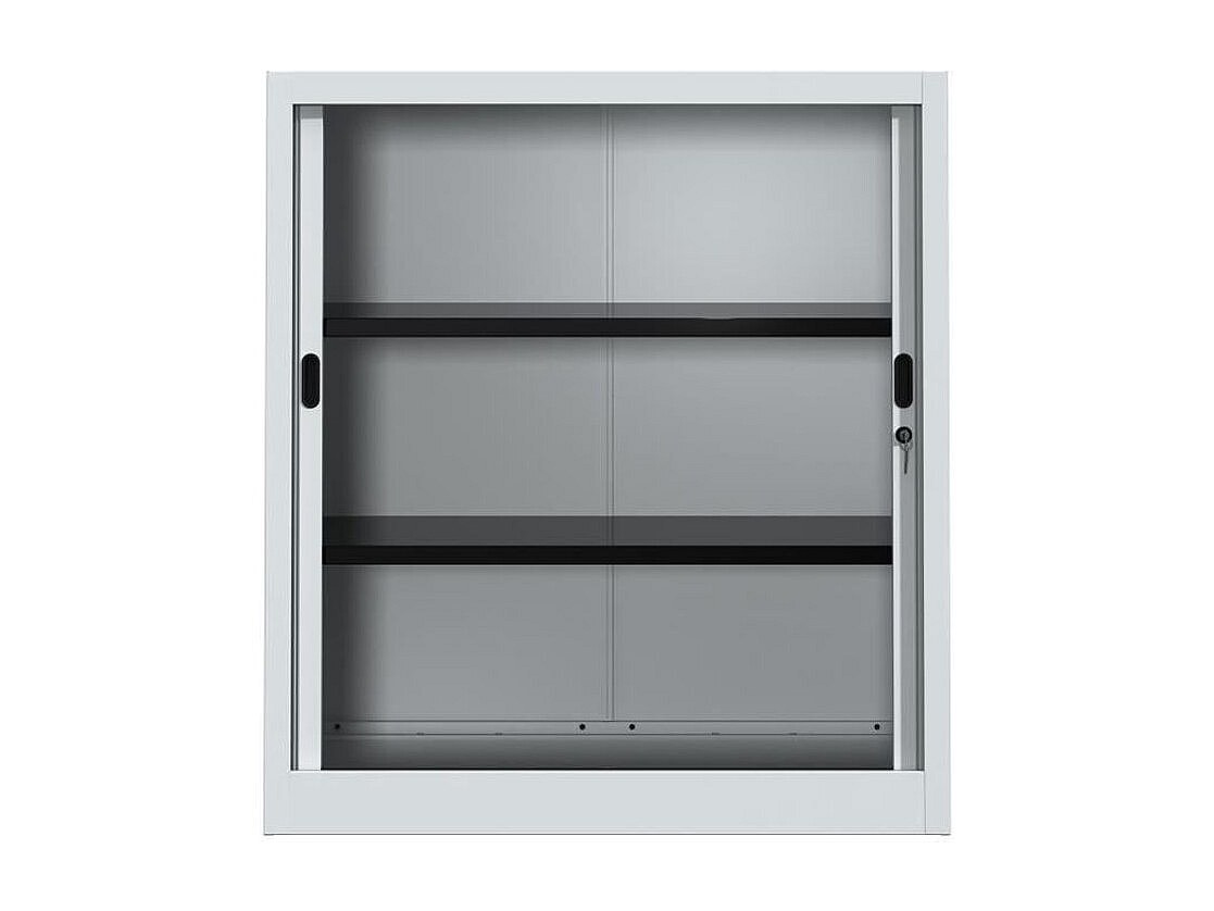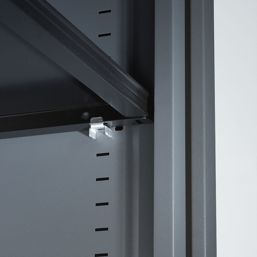 Armoire de bureau à rideaux anthracite 2 portes coulissantes merisier Klass L90xH100xP45