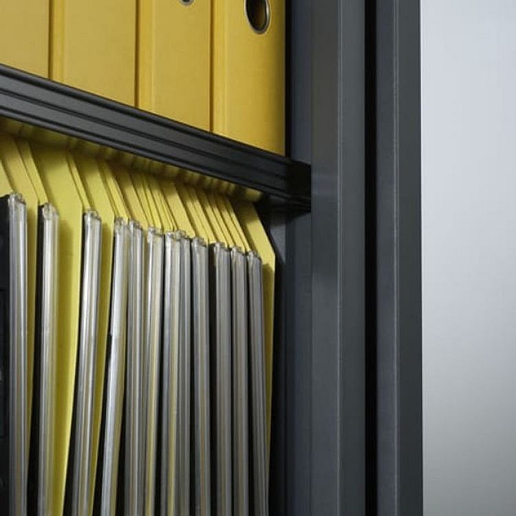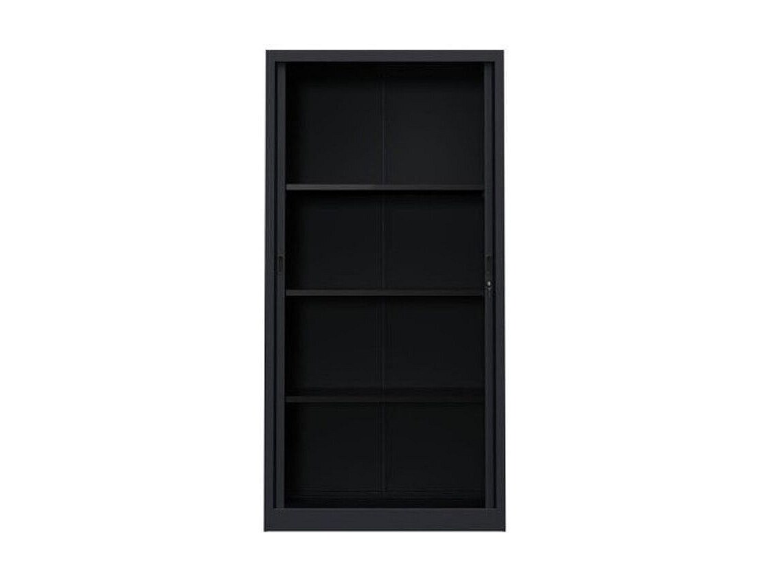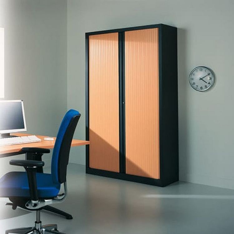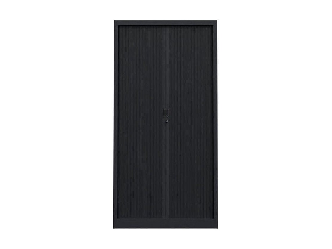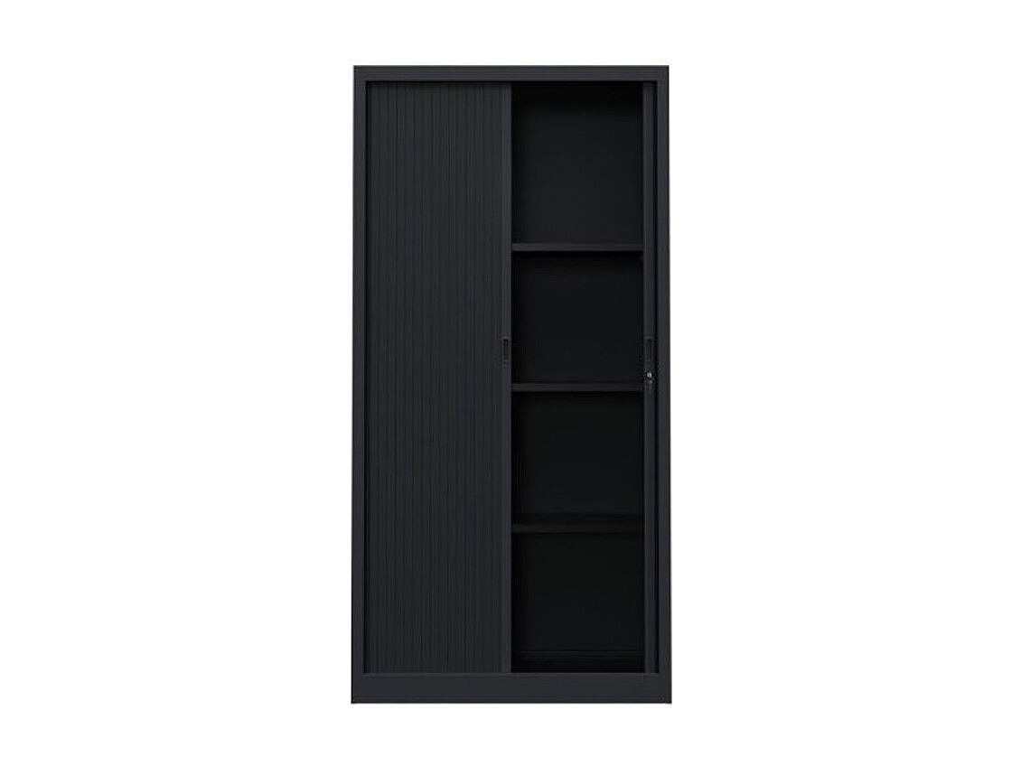 Armoire de bureau à rideaux anthracite 2 portes coulissantes merisier Klass L90xH180xP43