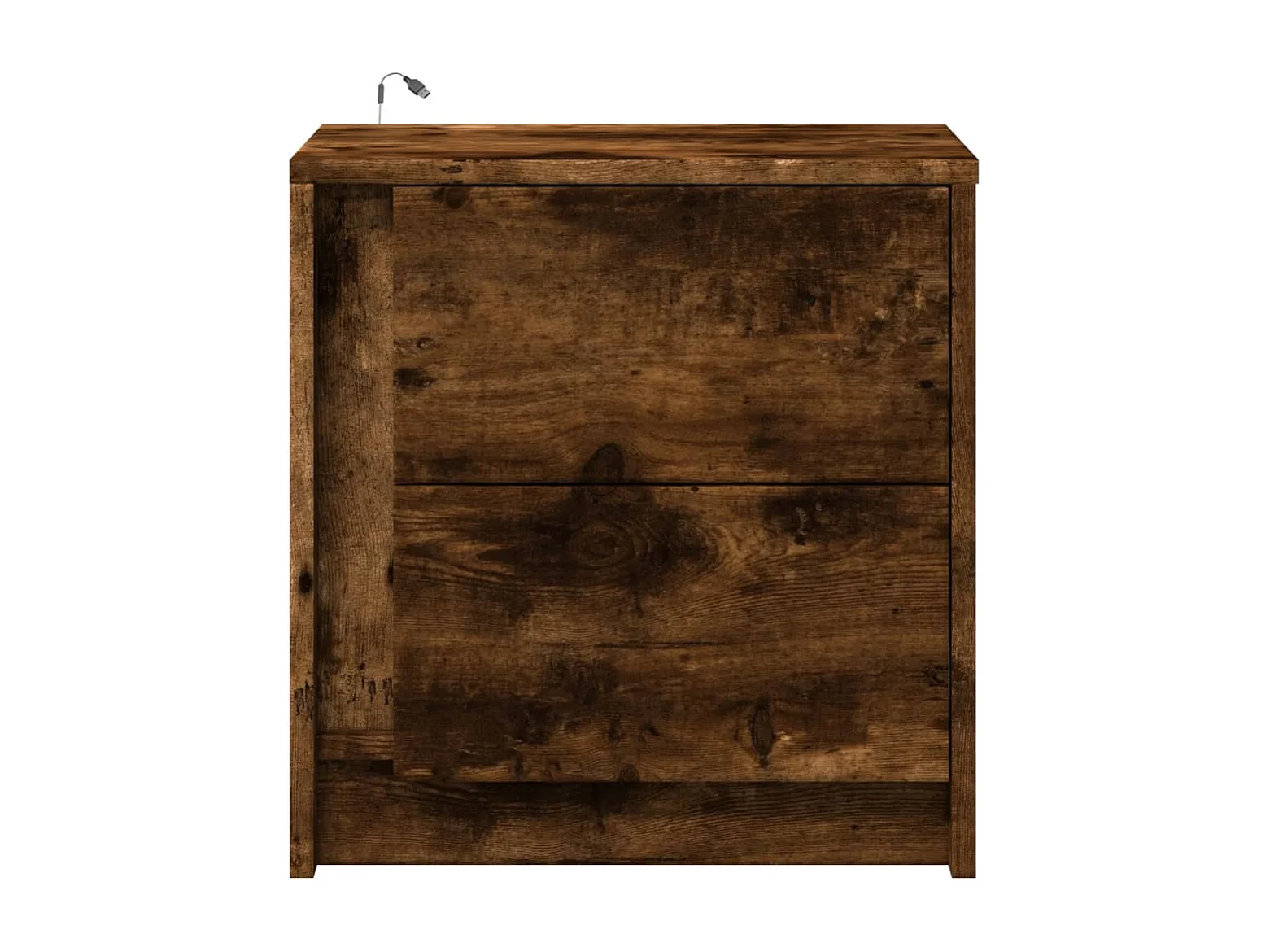 Table de chevet avec lumières LED chêne fumé 50x40x45 cm