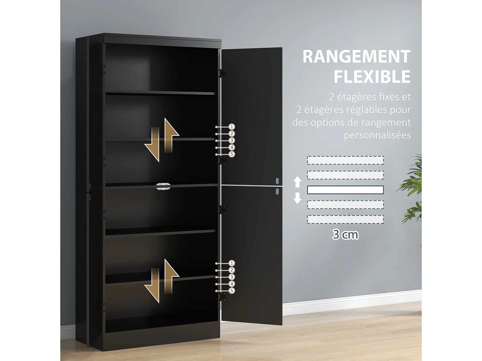 Armoire de cuisine buffet de salle à manger avec 4 portes 6 étagères de rangement style moderne 76 x 40 x 177 cm noir