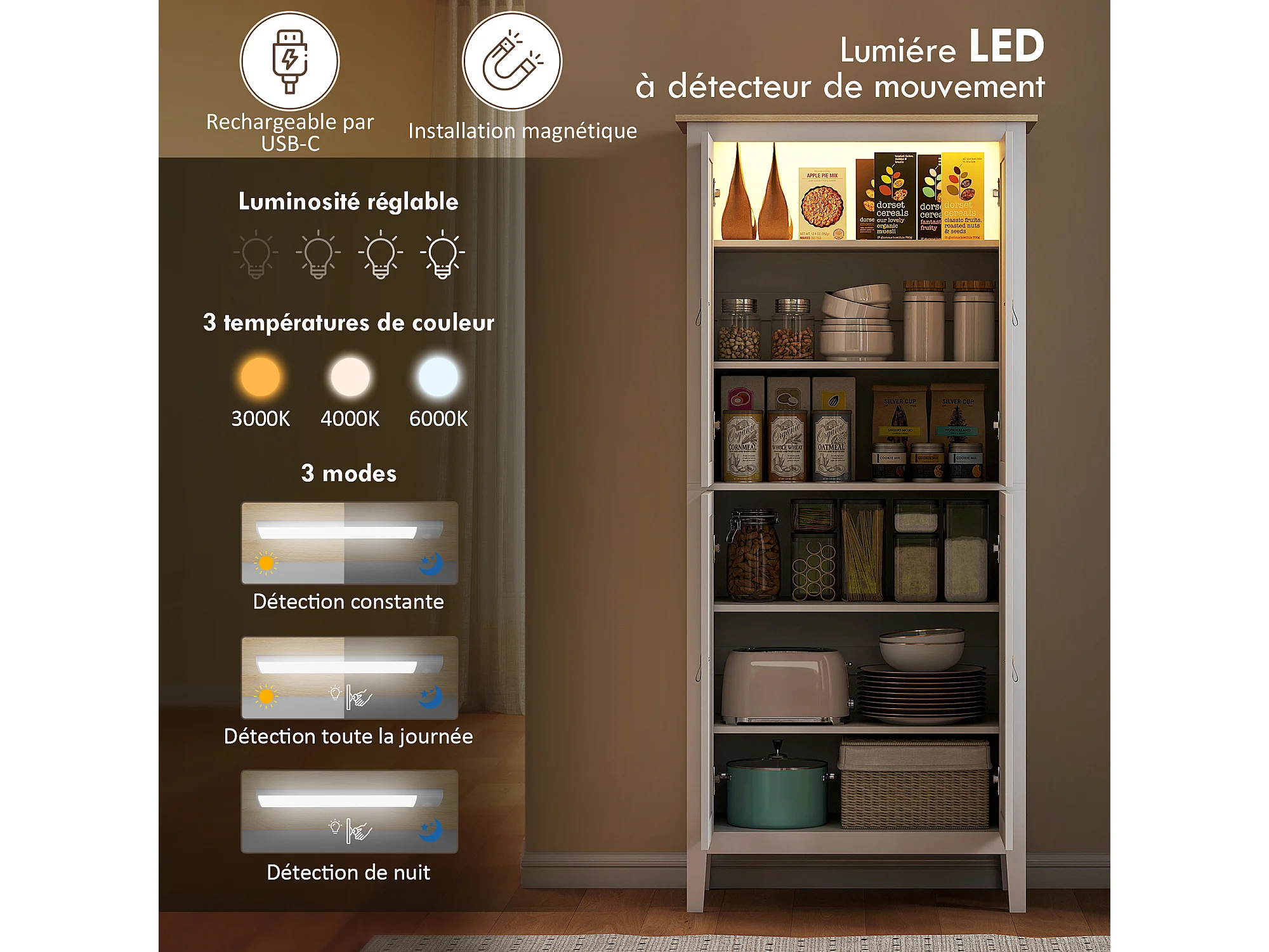 Armoire de cuisine LED - 4 portes, 6 niveaux - poignée bouton doré effet cuir MDF blanc effet bois