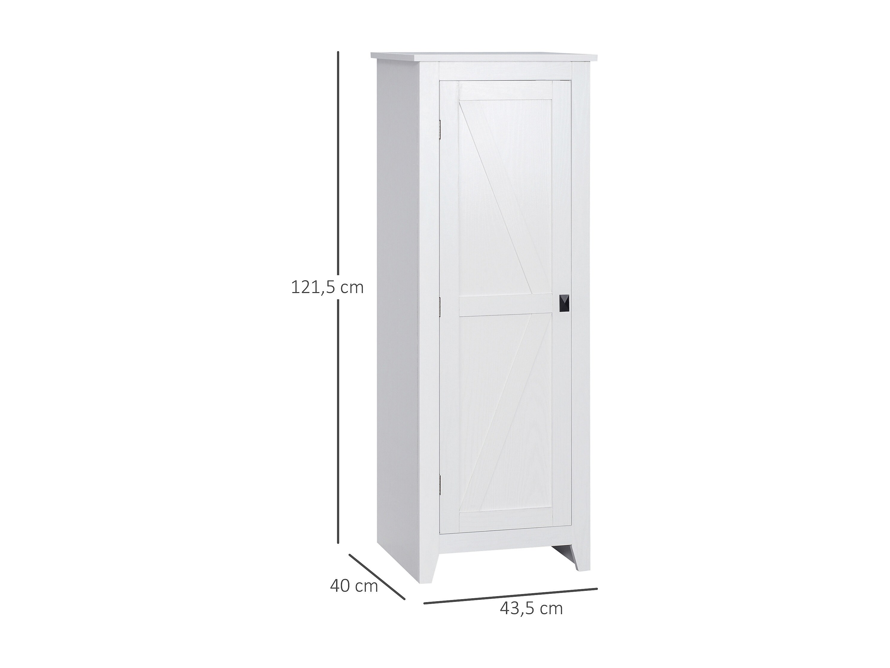 Armoire de cuisine style campagne chic porte 3 étagères réglables - dim. 43L x 40l x 121H cm - MDF blanc