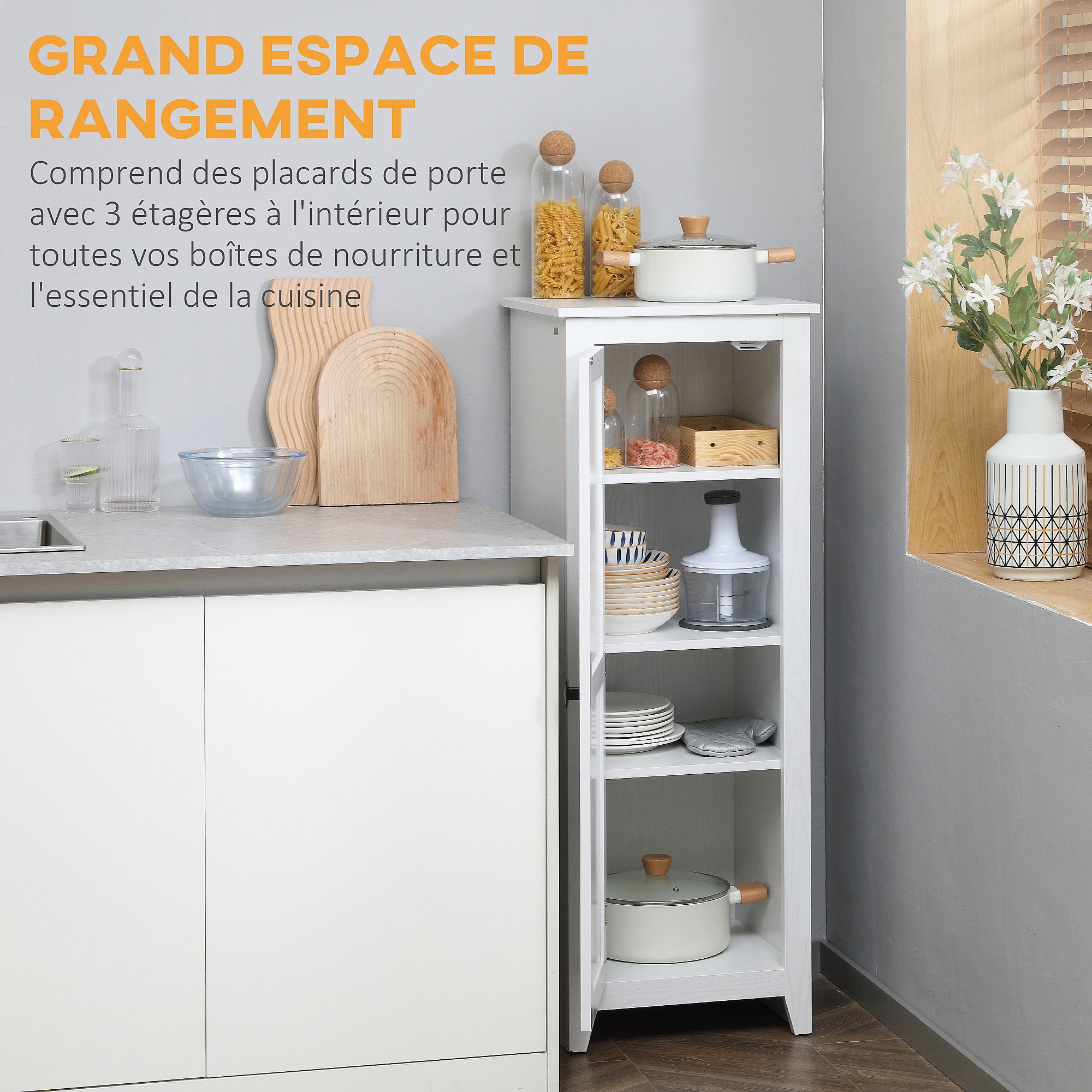 Armoire de cuisine buffet haut 4 portes 3 étagères tiroir verre trempé panneaux MDF blanc