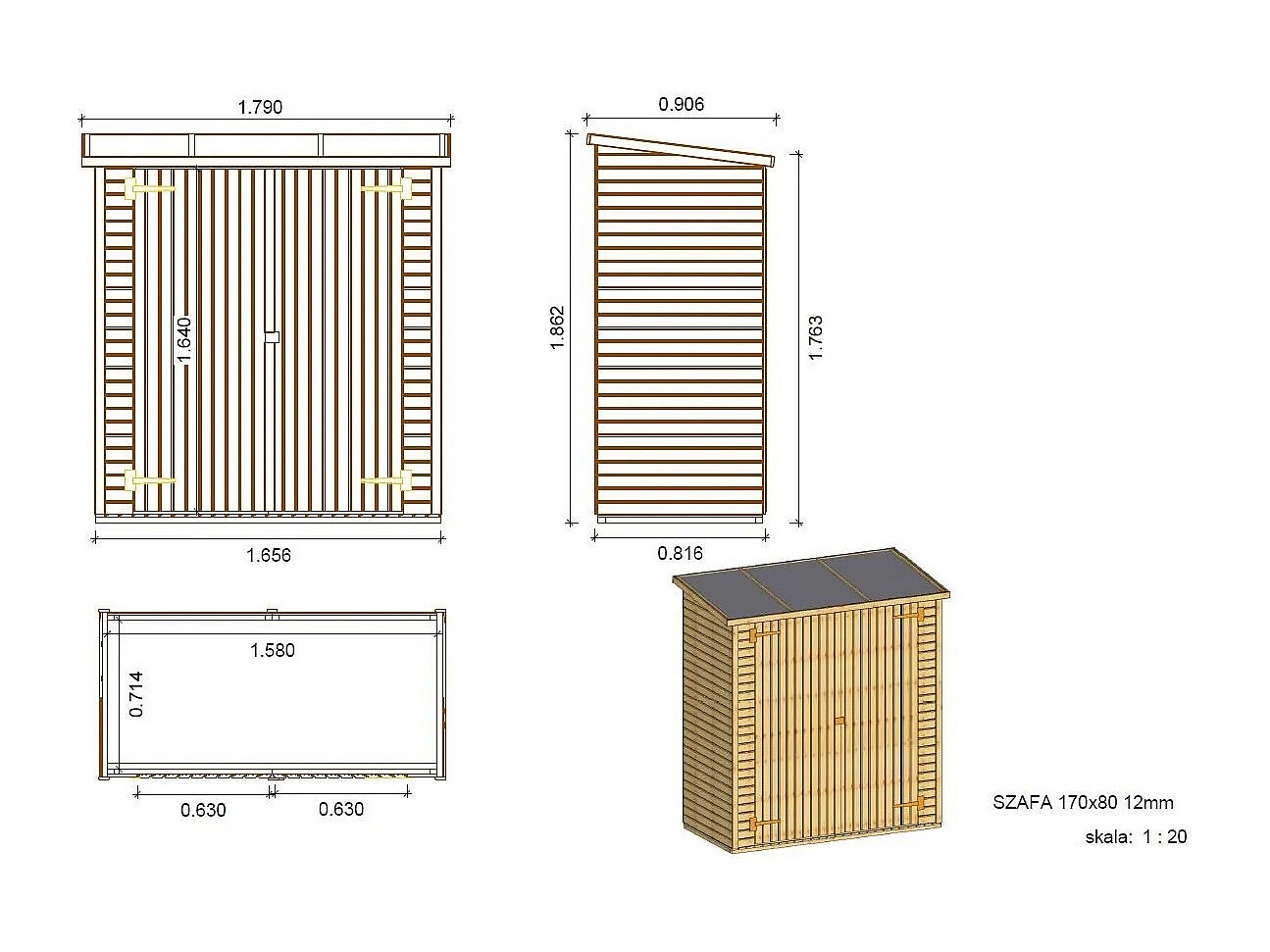 Armoire de jardin à outils 1,66x0,82 m H.1,86 - avec plancher et paroi arrière - DOM84 - ALTANKA