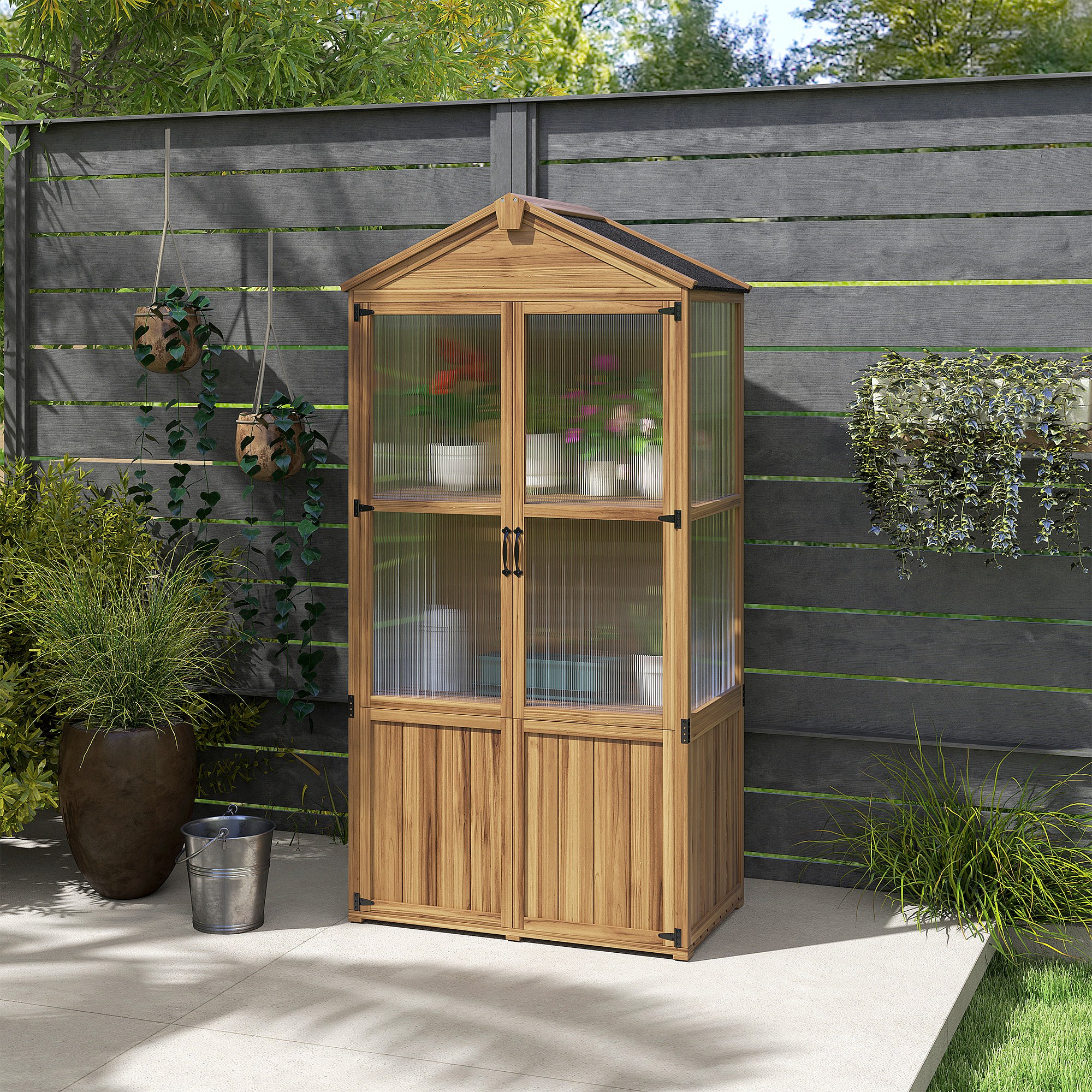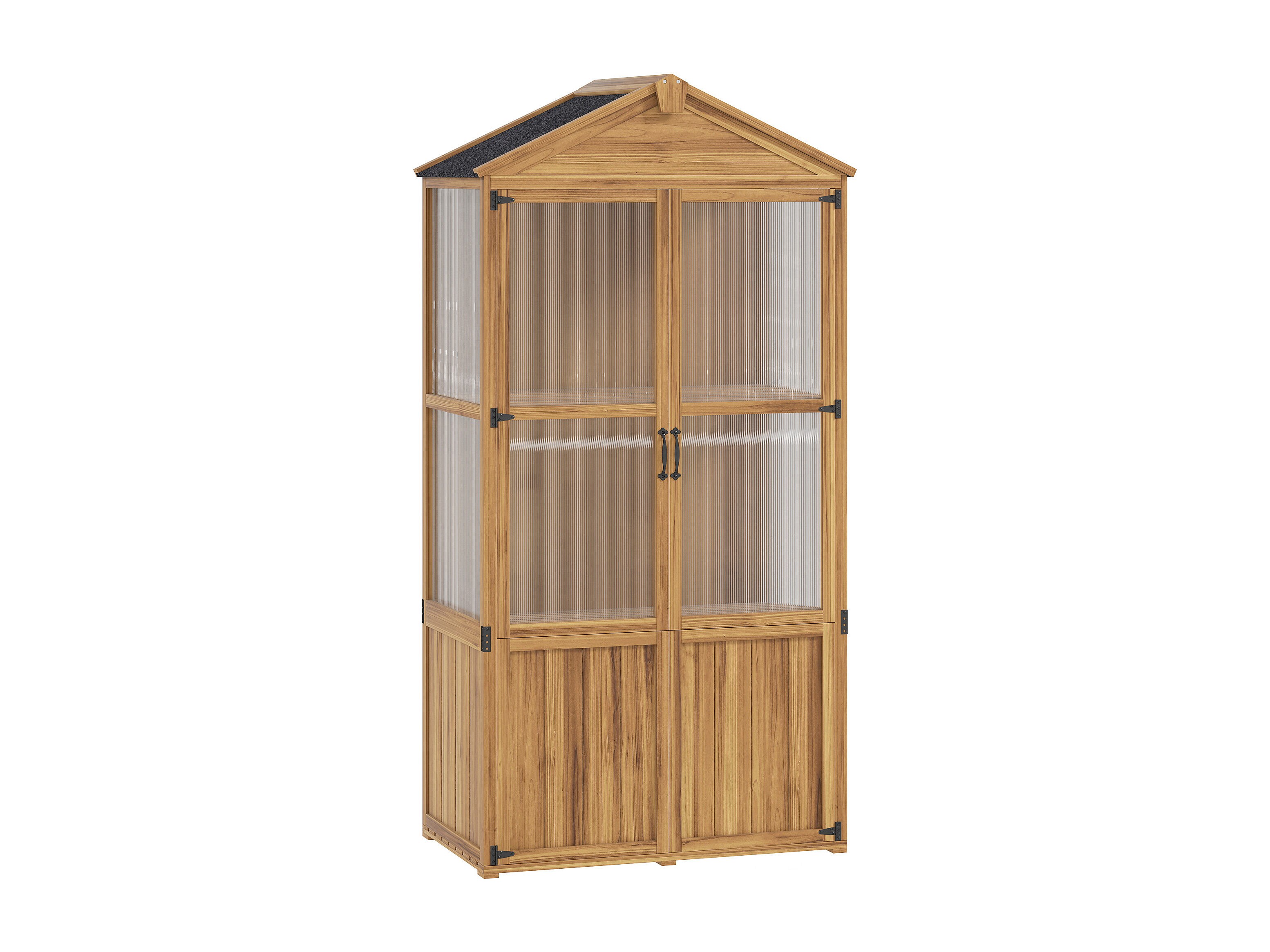 Armoire de jardin en bois - 2 portes, 2 étagères, toit bitumé - dim. 94 x 55 x 178 cm - sapin pré-huilé polycarbonate