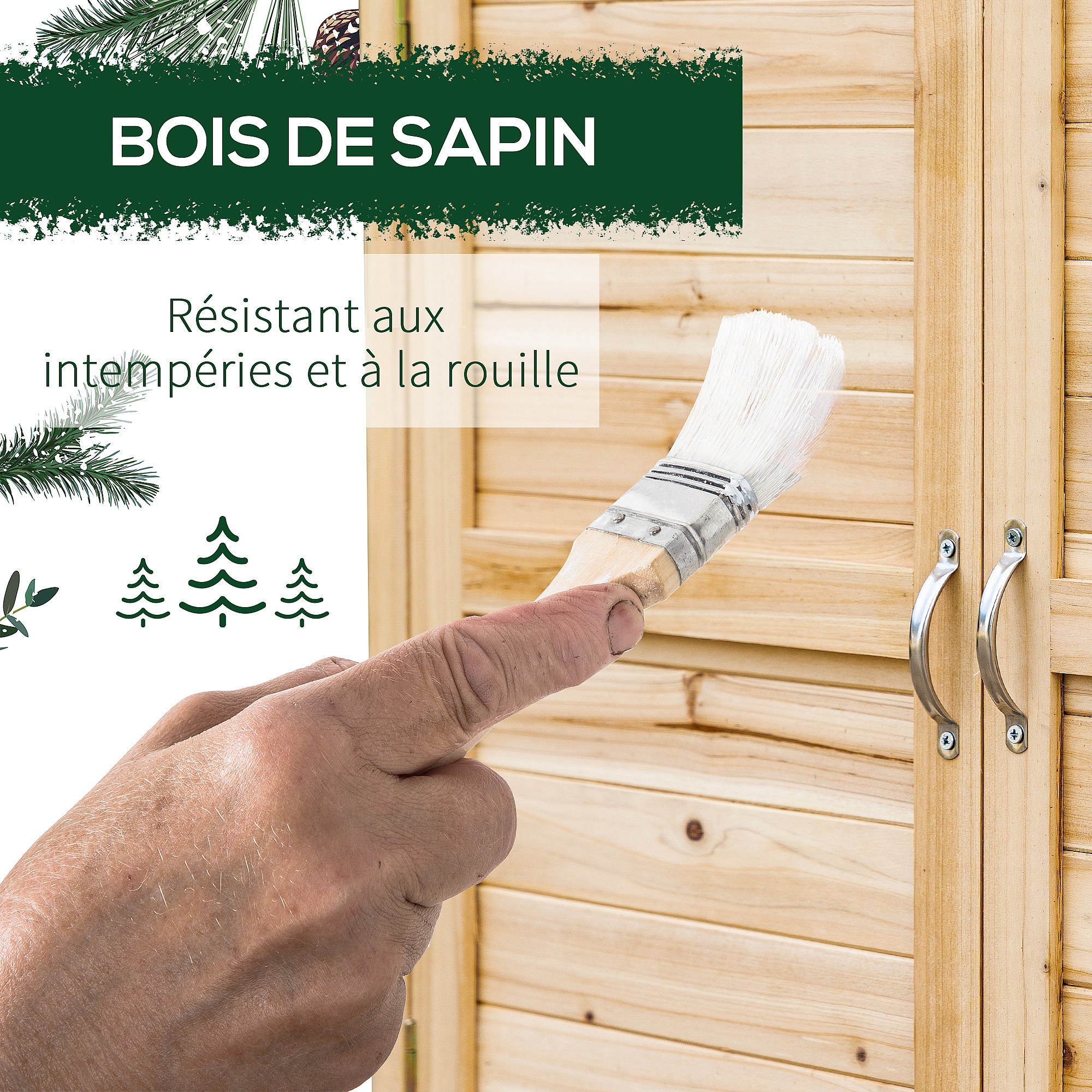 Abri de jardin armoire de jardin remise pour outils sur pied dim. 75L x 40l x 90H cm 3 étagères 2 portes toit tôle bois sapin pré-huilé