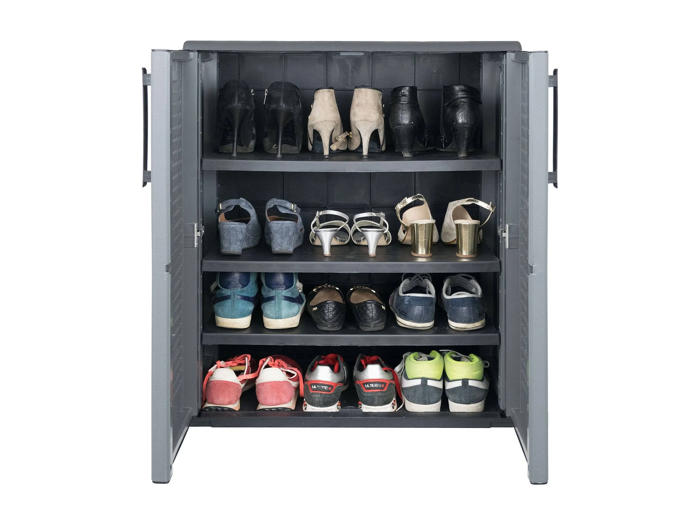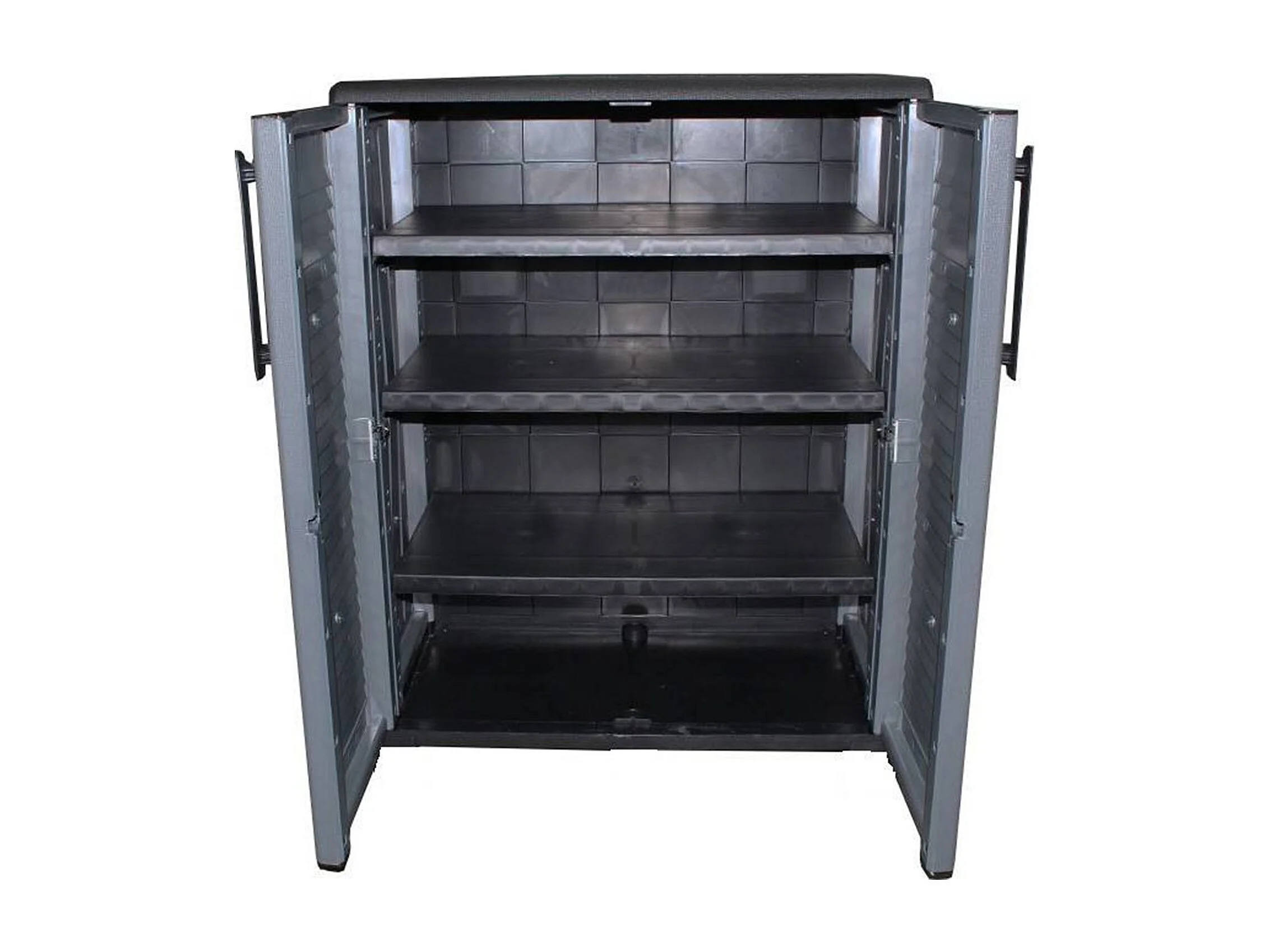 Armoire d'extérieur Bilzen, Mobilier d'extérieur, Armoire de balcon polyvalente, 100% Made in Italy, Gris et Noir, Finition rayée, 68x37h84 cm