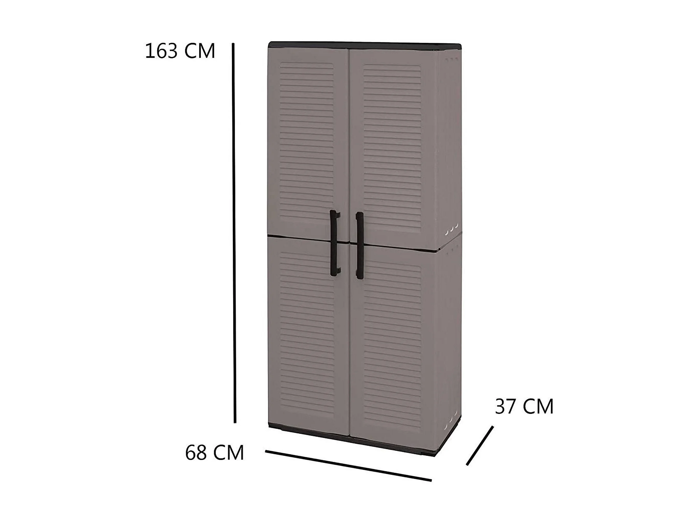 Armoire d'extérieur Geel, Armoire porte-balai polyvalente, Armoire d'extérieur 2 portes, 100% Made in Italy, Finition damier, 68x37h163 cm, Gris et Noir