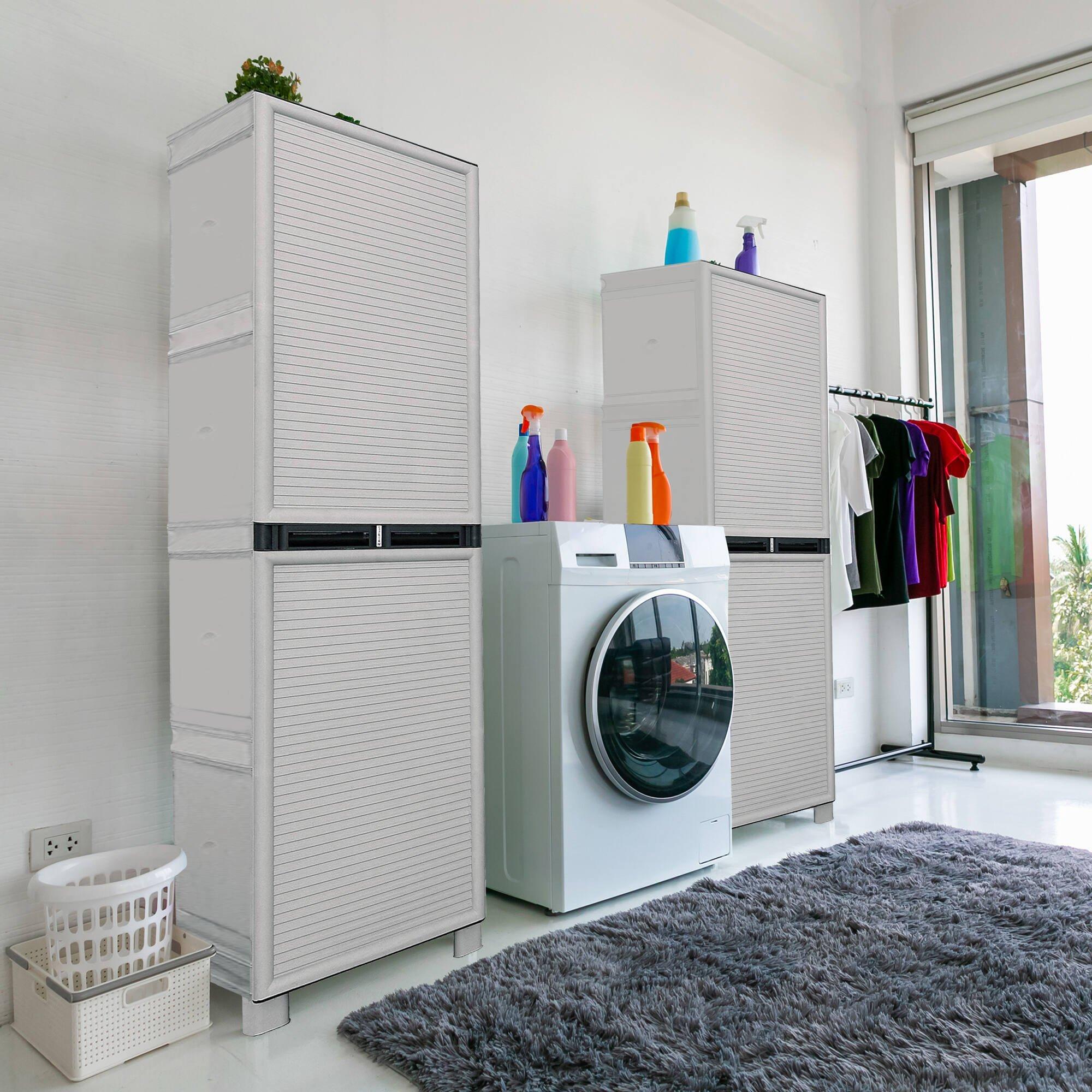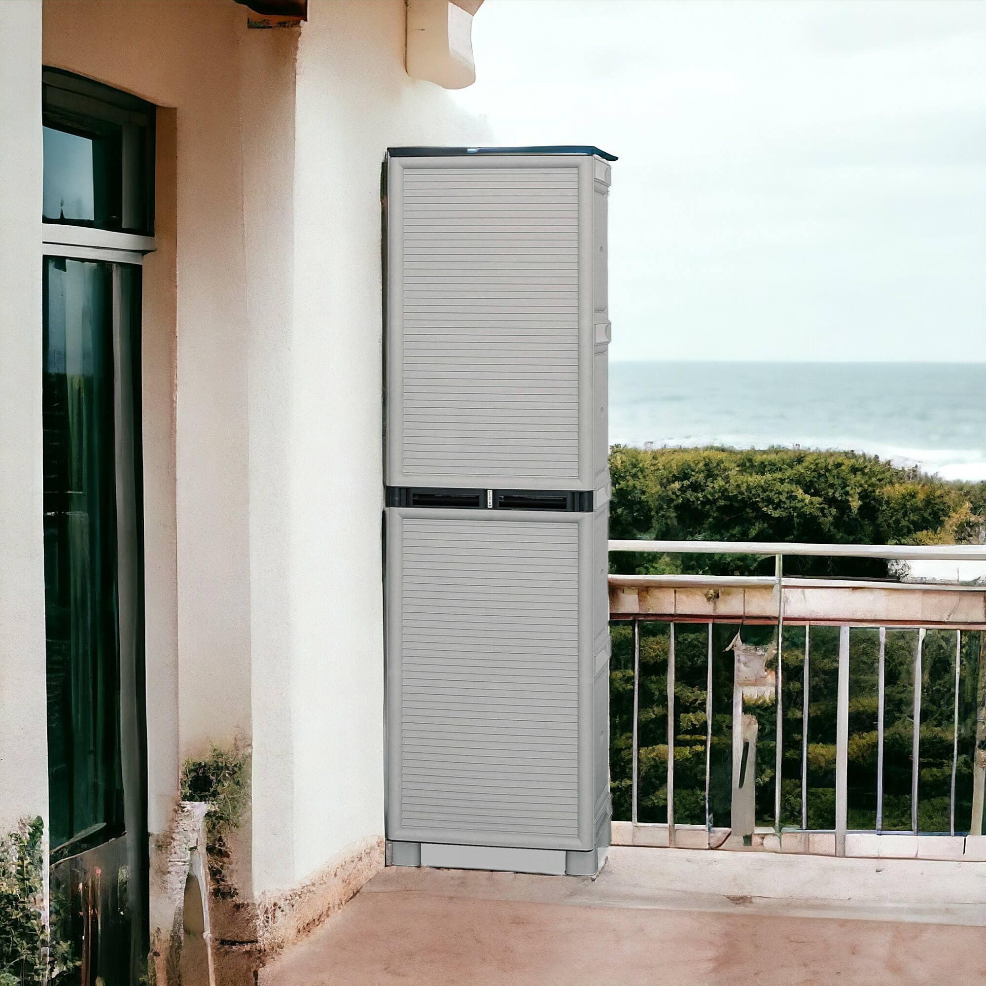 Armoire d'extérieur Liège, Mobilier d'extérieur, Armoire de buanderie polyvalente, 100% Made in Italy, Gris clair, 50x39h172 cm