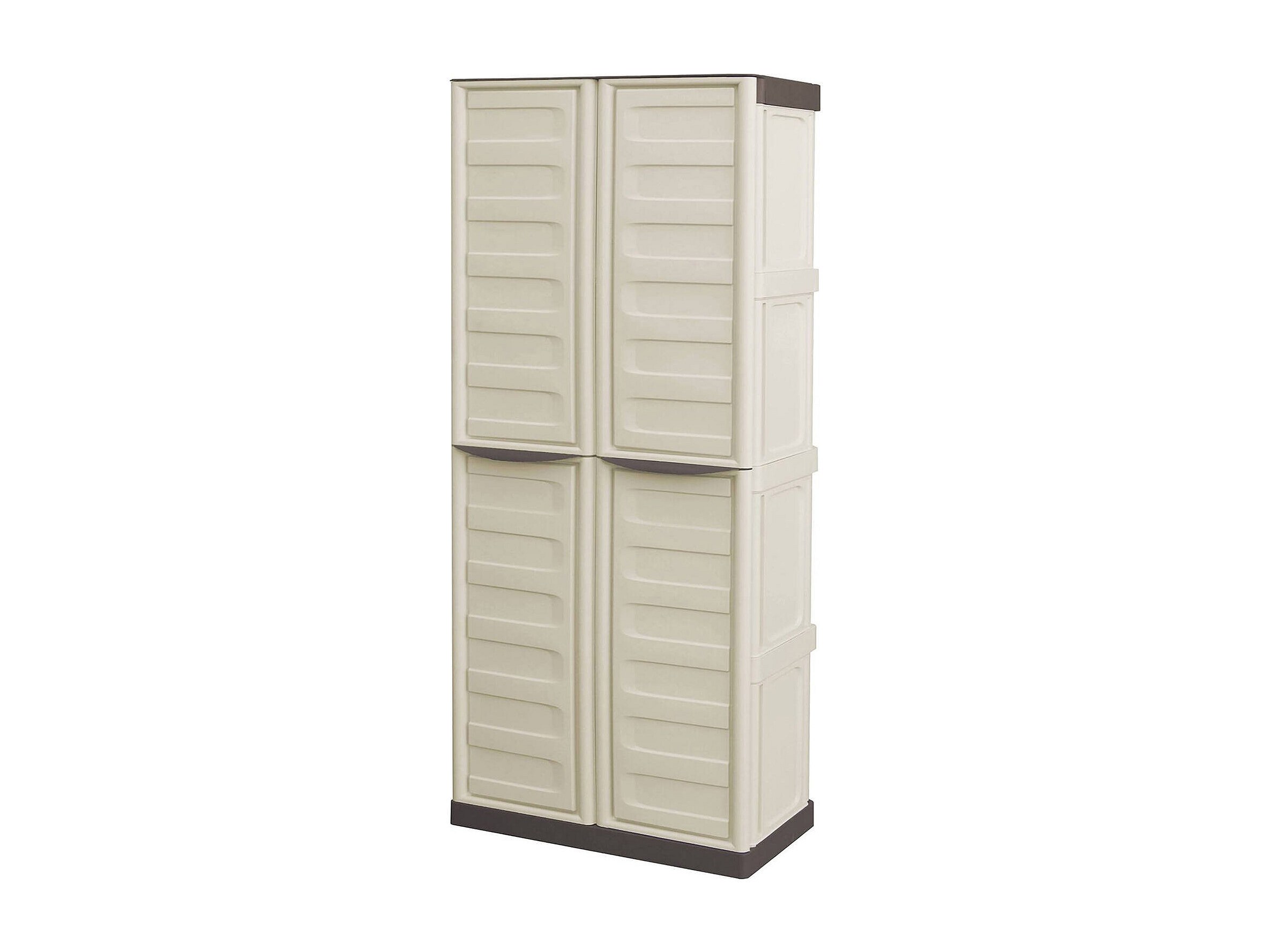 Armoire d'extérieur Marchin, Armoire de balcon polyvalente, Armoire d'extérieur 2 portes, 100% Made in Italy, Beige et Marron, Finition Rayée, 70x39h165 cm