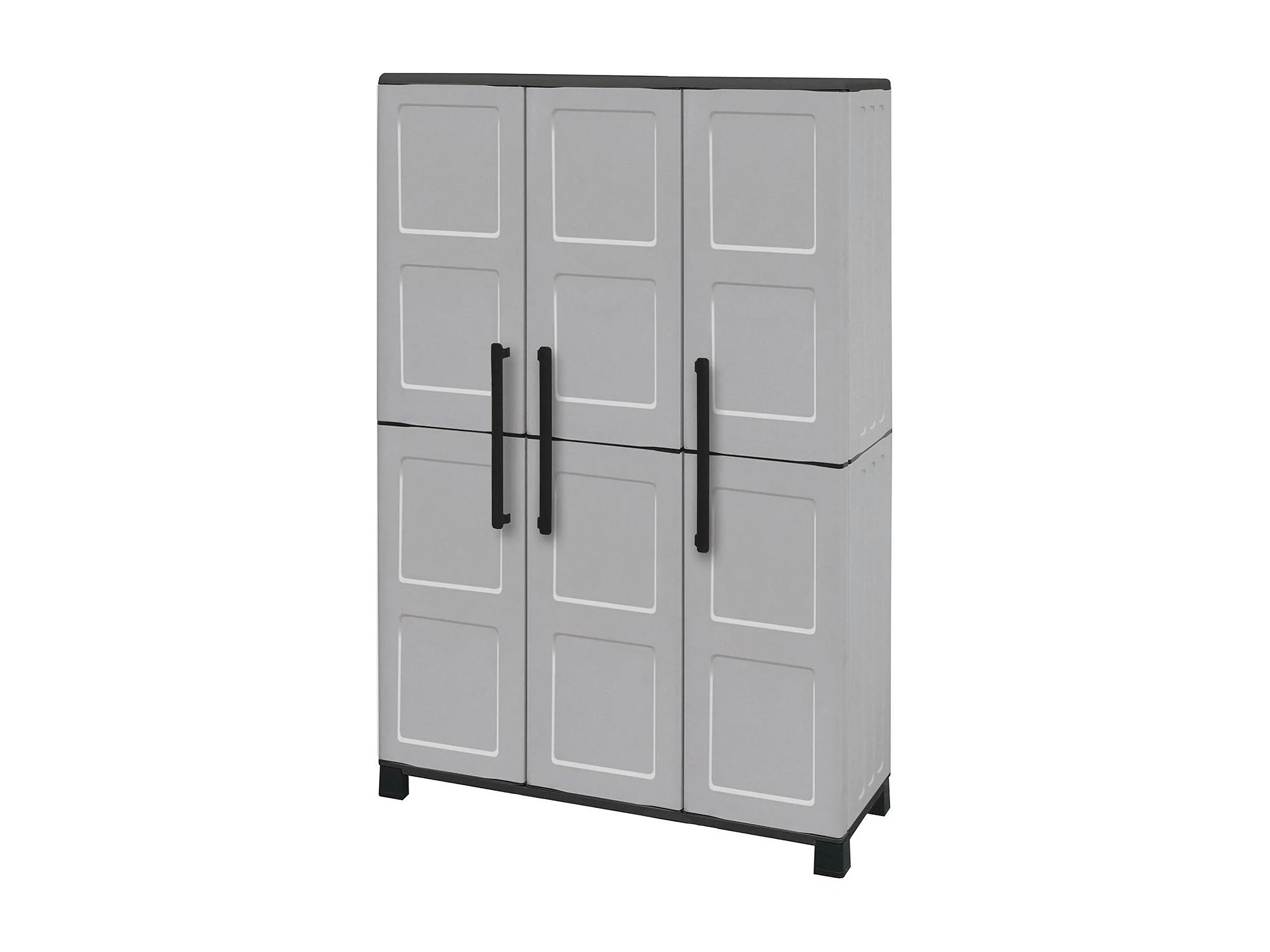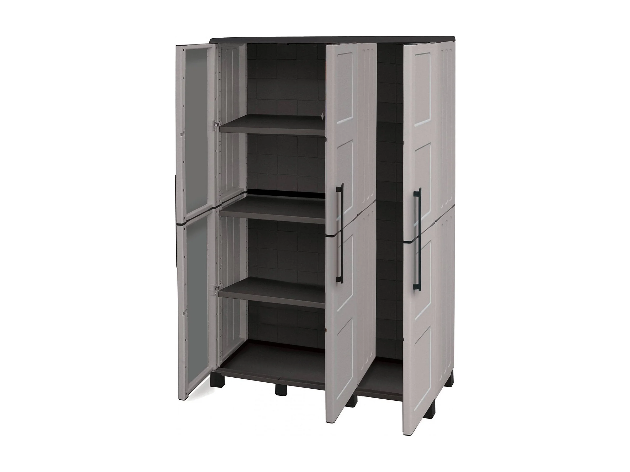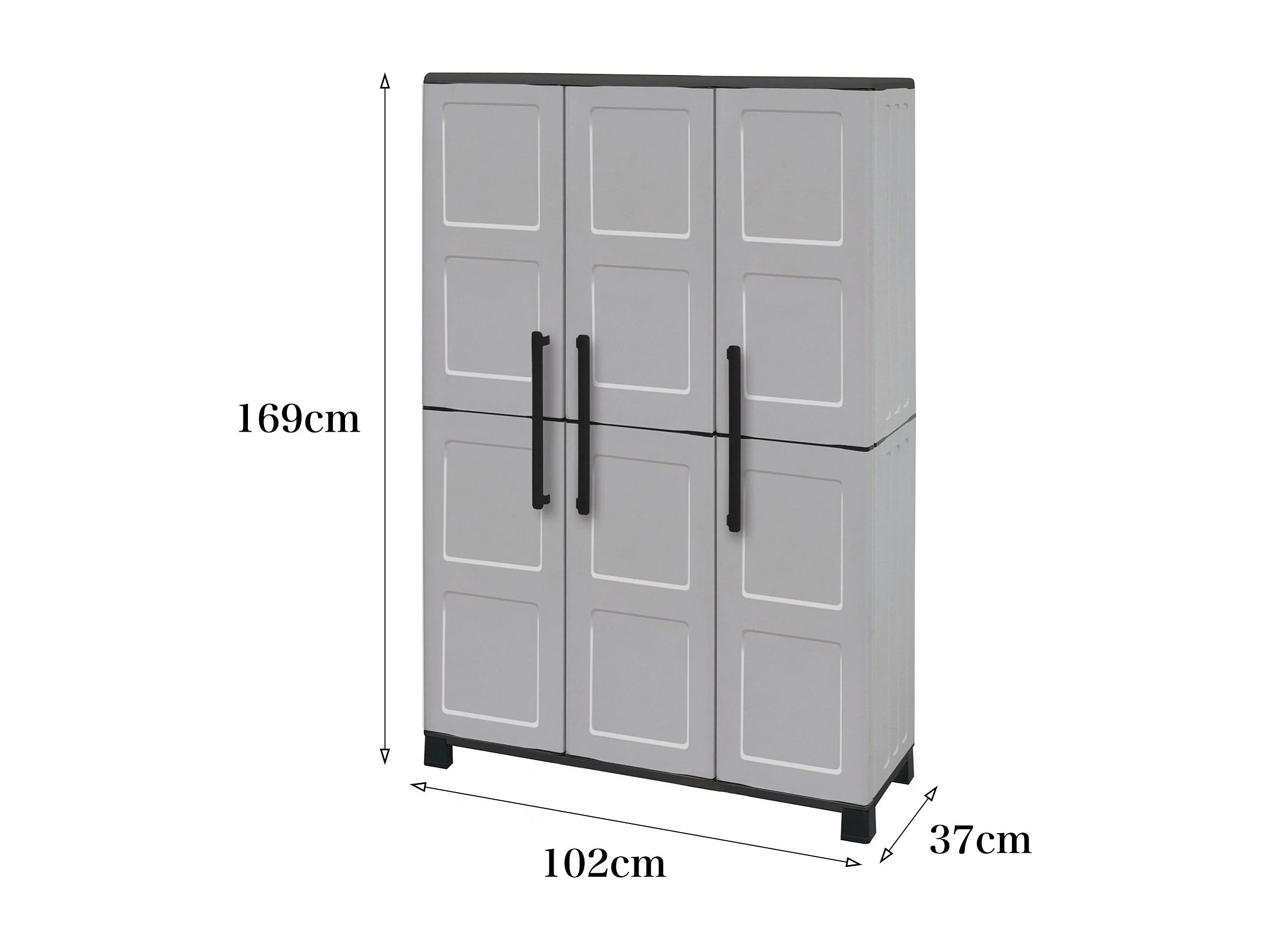 Armoire d'extérieur Nandrin, Armoire à balais, Armoire d'extérieur 3 portes, 100% Made in Italy, 102x37h169 cm, Gris clair et noir, Finition damier