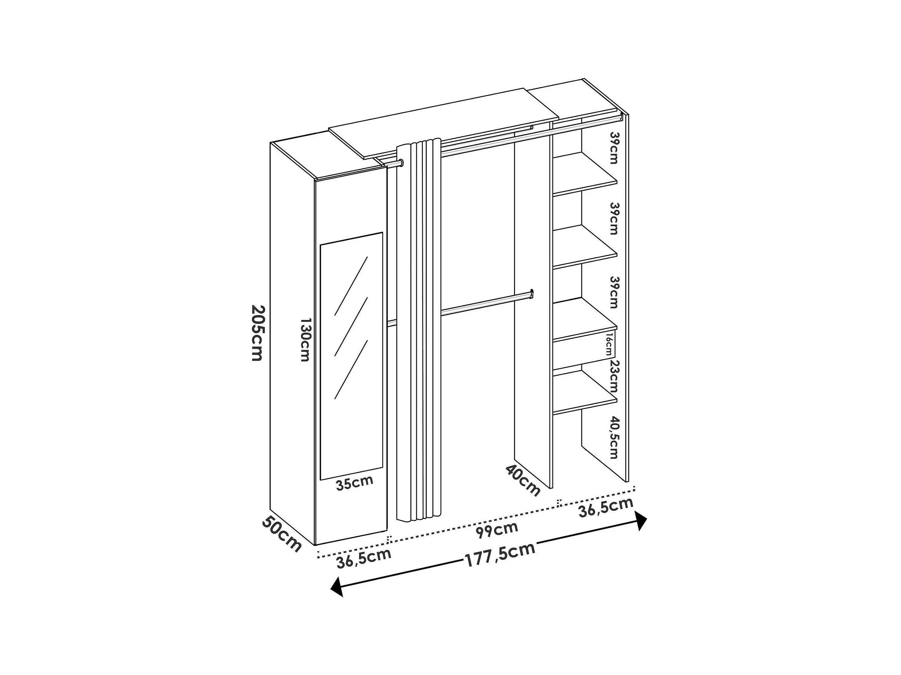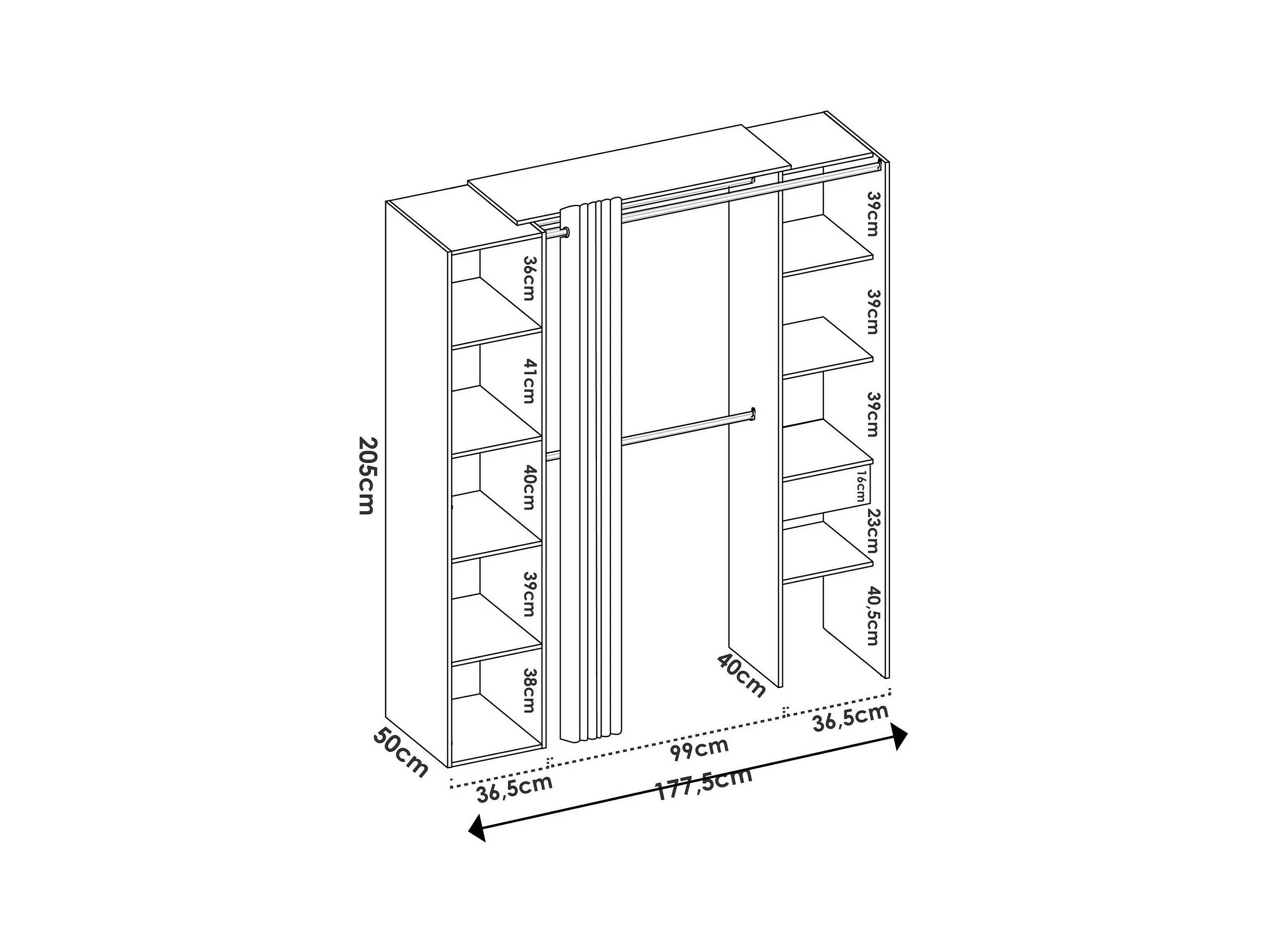 Armoire Dmancin, Structure pour dressing, Cintre ouvert, 177x52h205 cm, Blanc et Anthracite