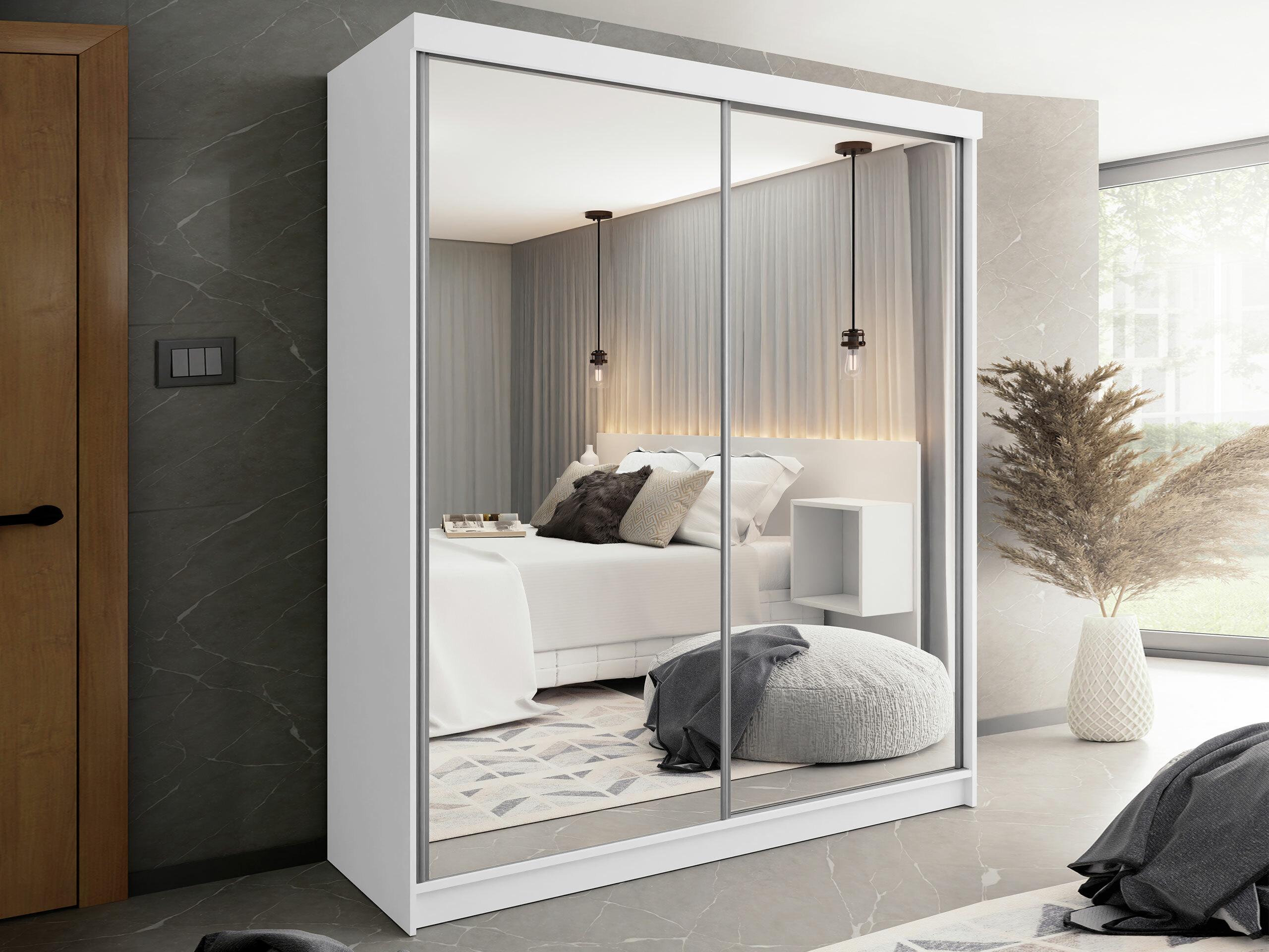 Armoire Dover 106, Blanc, 200x200x62cm, Portes d'armoire: Coulissantes