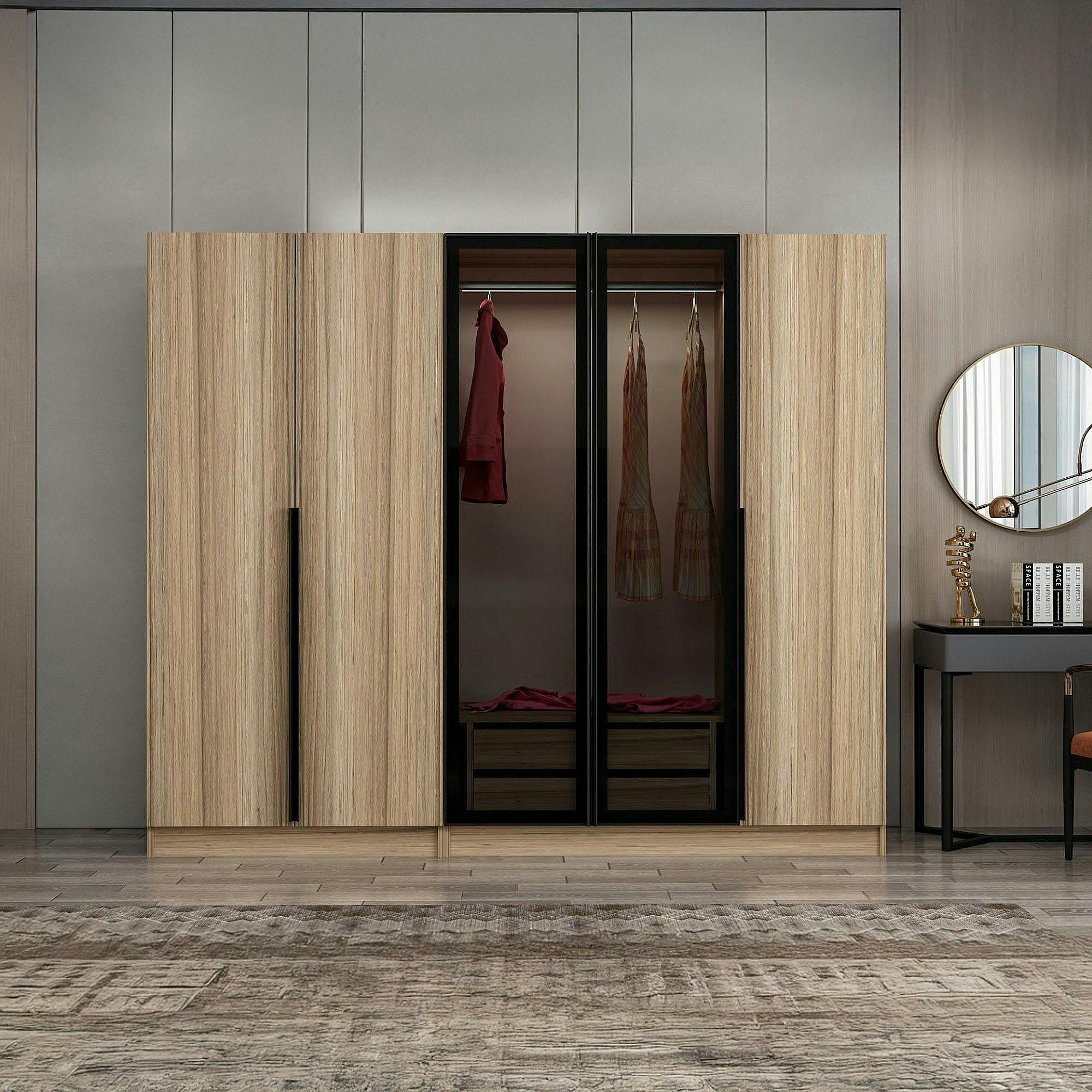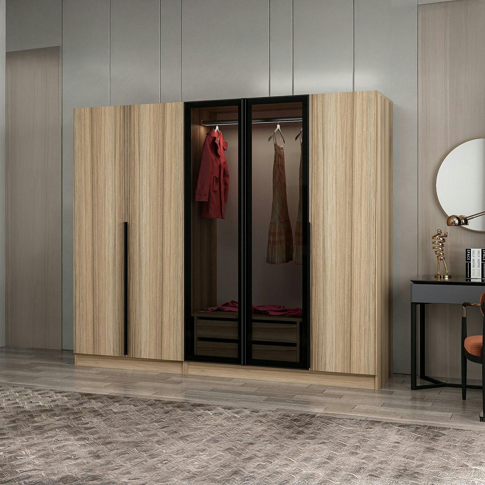 Armoire dressing design effet bois 2 portes vitrées BYRON