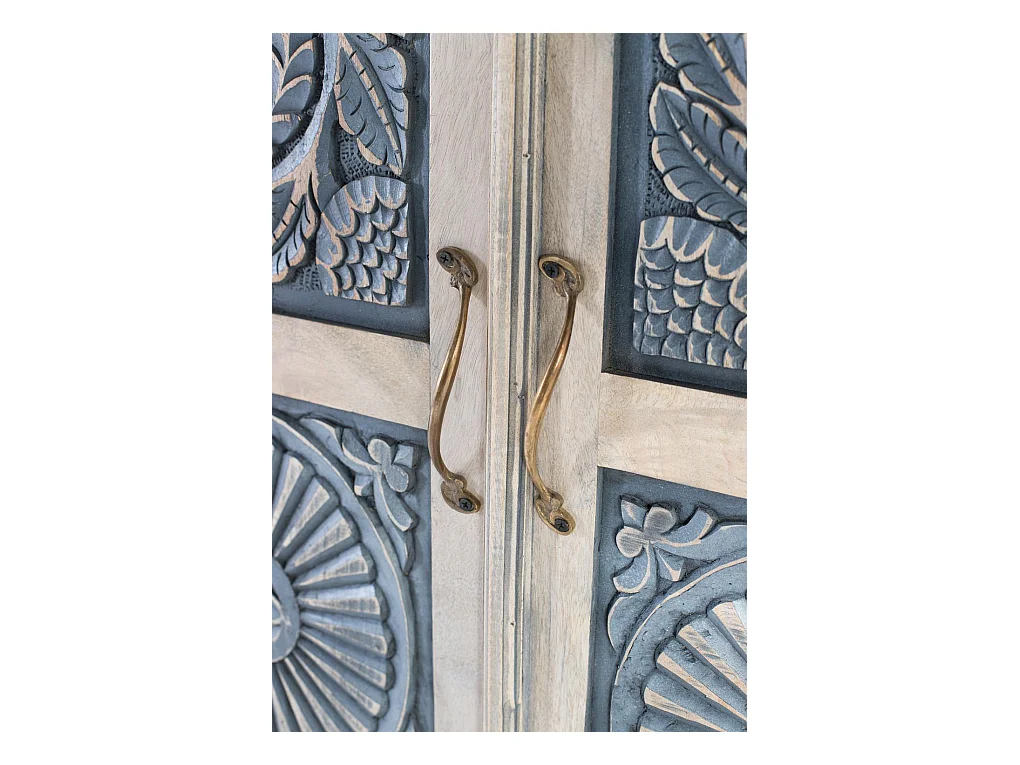 Armoire en bois de manguier avec portes sculptées à la main 180cm
