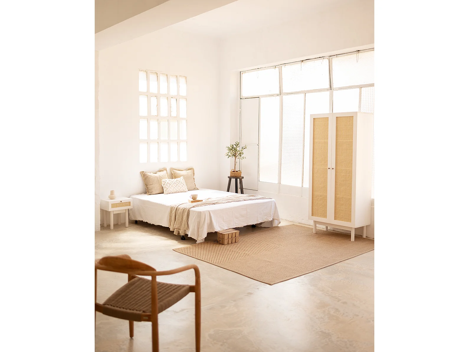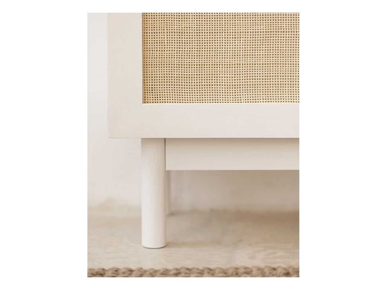 Armoire en bois de sapin et tressage de rotin blanc 180x80cm - FRIDA - DECOWOOD
