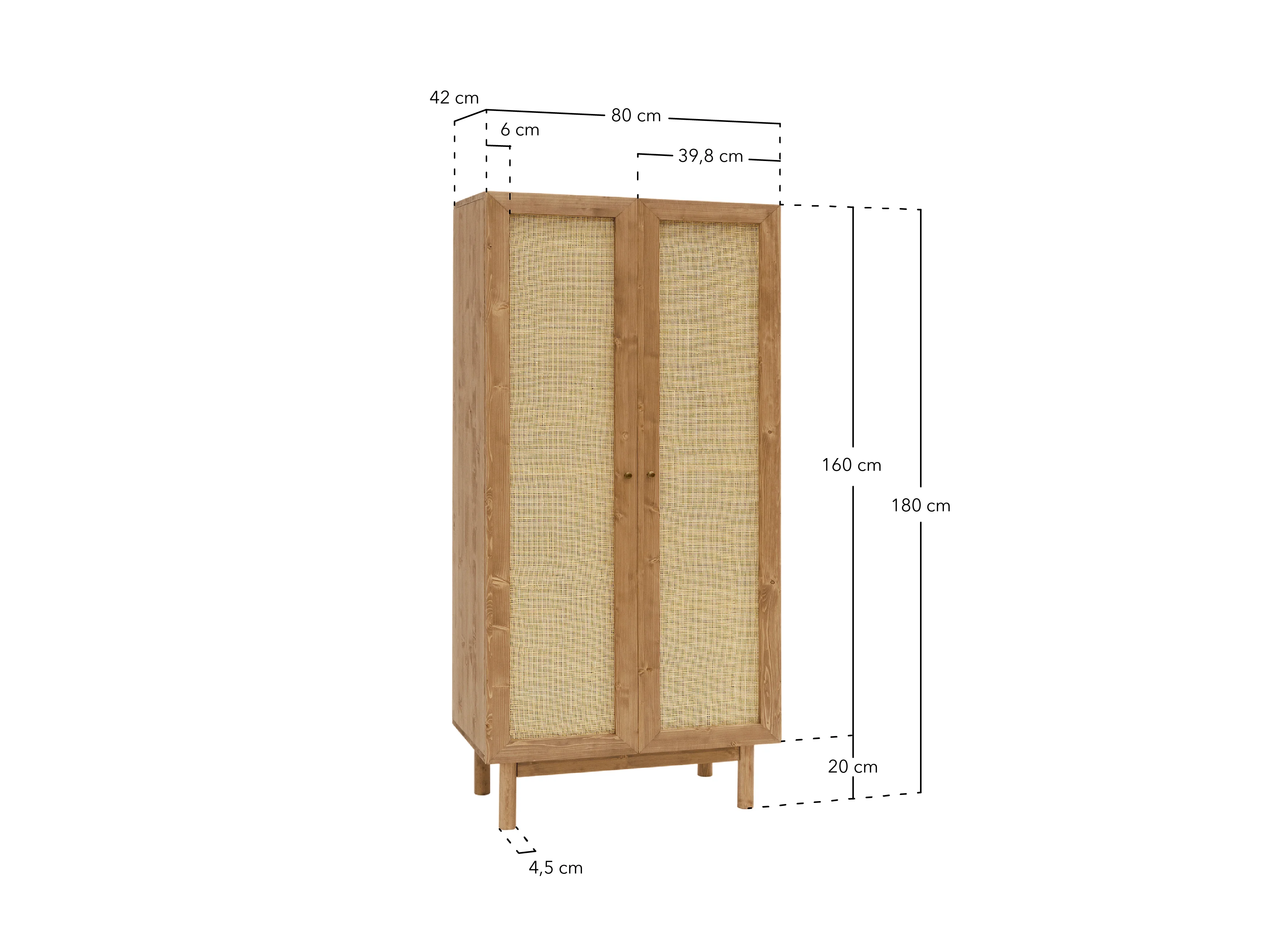 Armoire en bois de sapin et tressage de rotin naturel 180x80x40cm - FRIDA - DECOWOOD