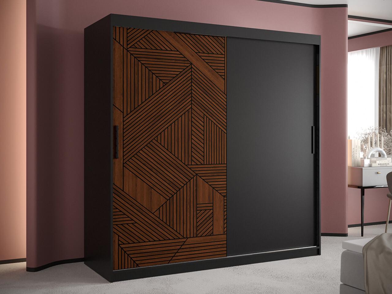 Armoire Hartford 465, Noir|Noyer, 200x180x62cm, Portes d'armoire: Coulissantes