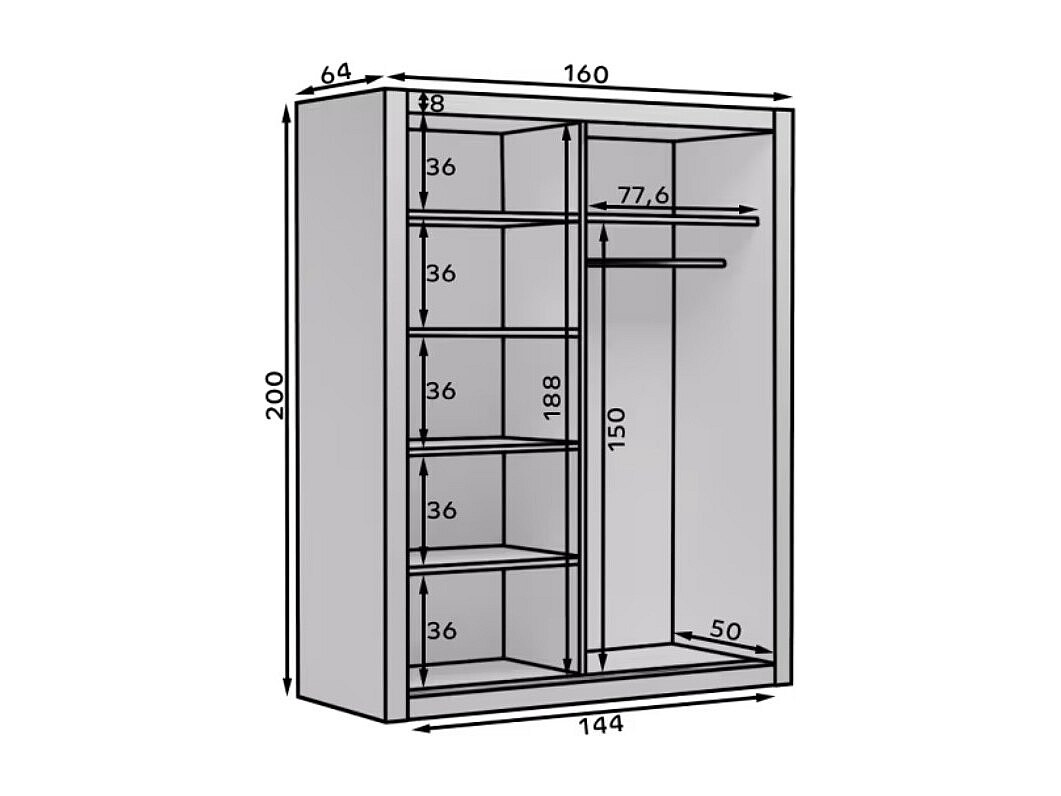 Armoire chambre adulte DIVA 160cm – 2 portes coulissantes-Beige