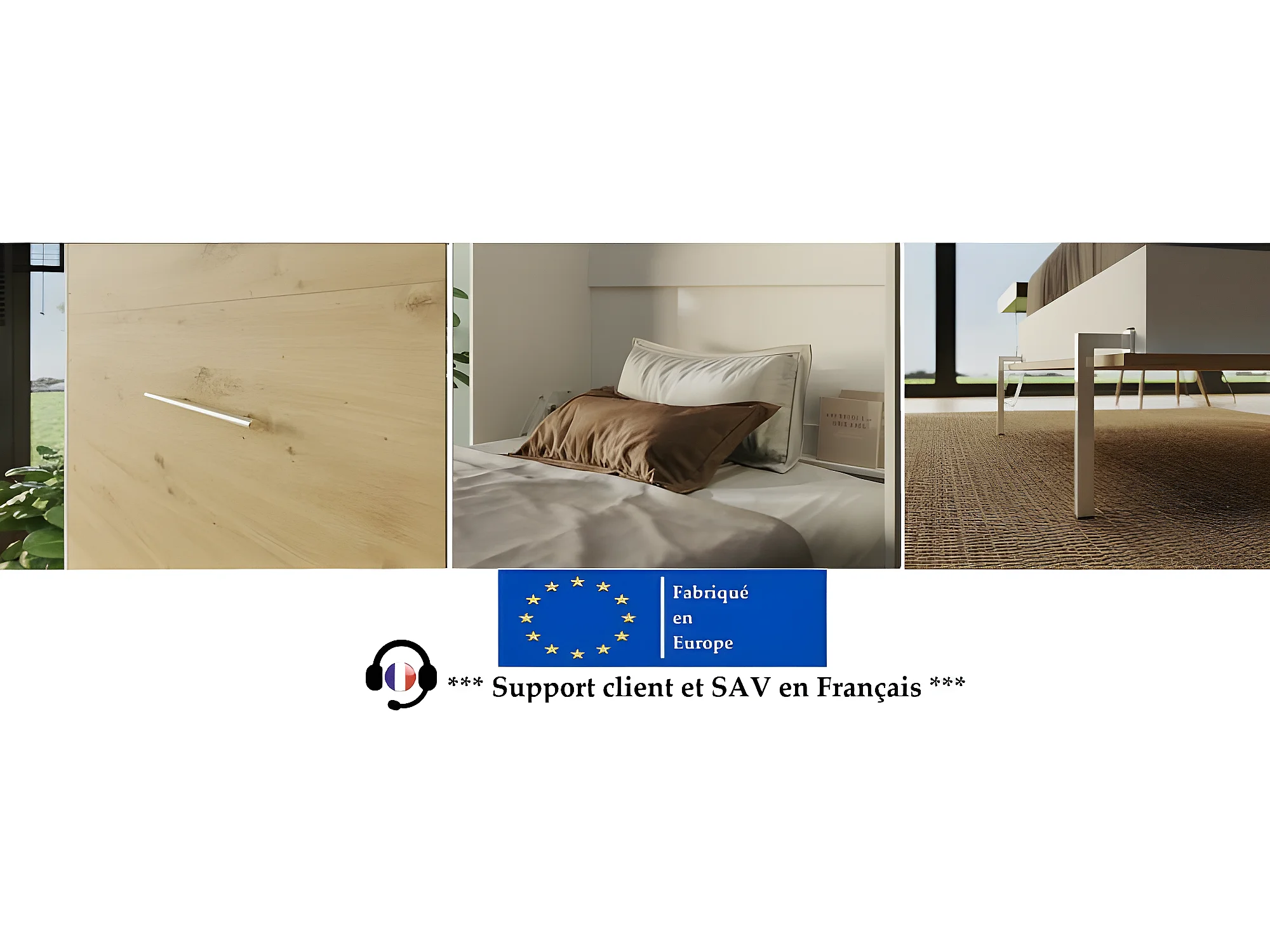 Armoire Lit escamotable 140x200cm Blanc/Chêne Sauvage Vertical Lit Rabattable Lit Mural C*Adore