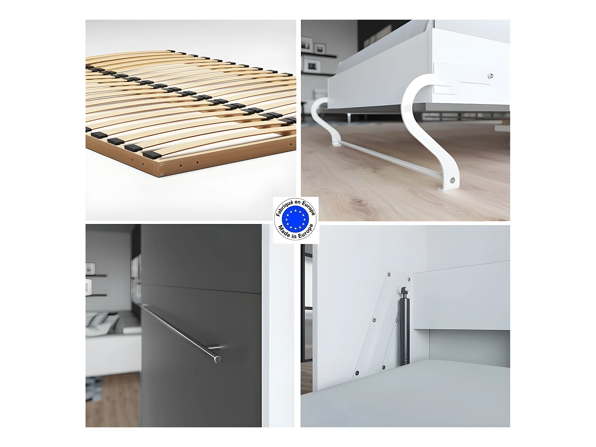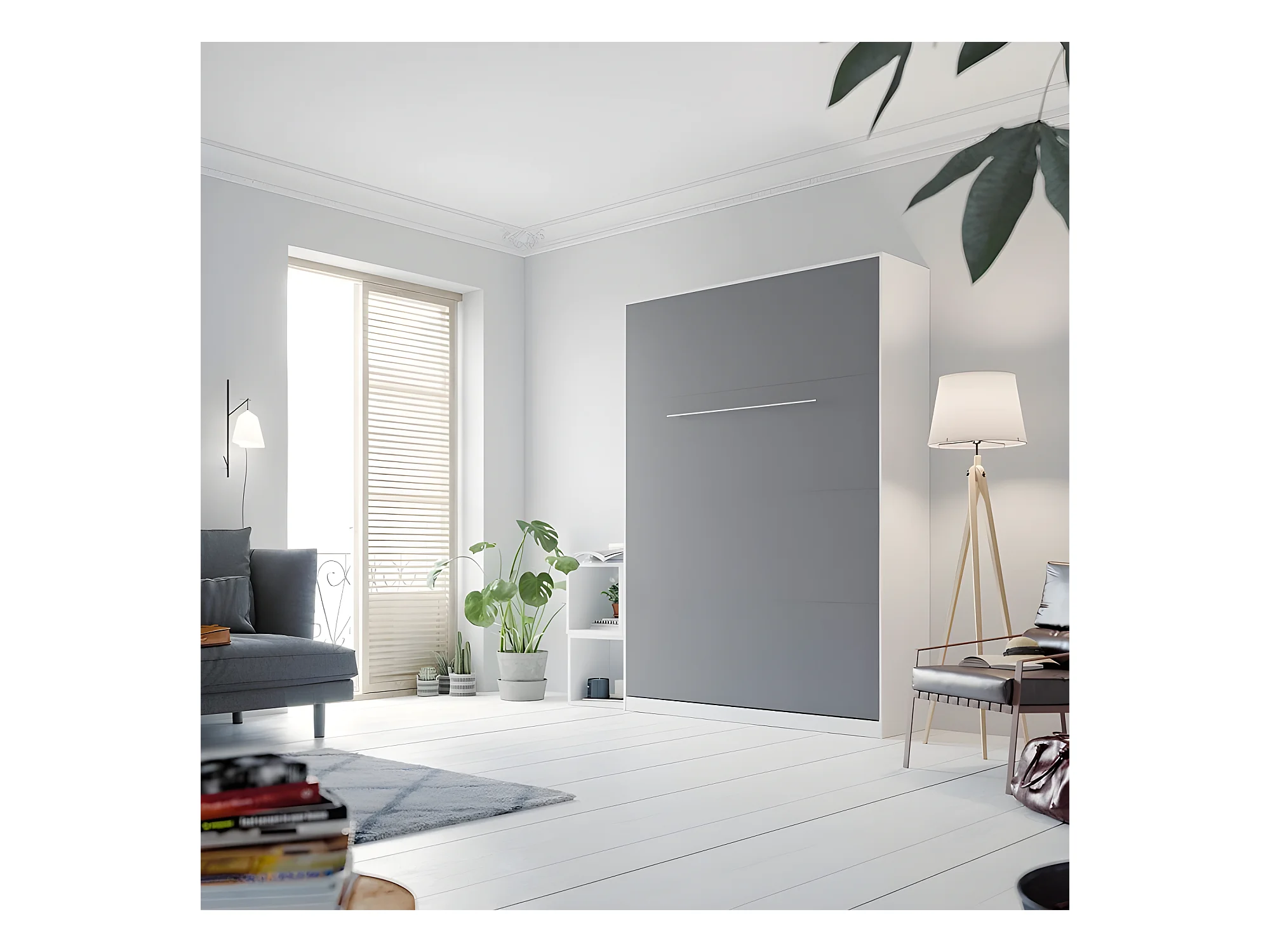 Armoire Lit escamotable 140x200cm Lit Rabattable Lit Mural Supérieur Vertical Blanc/Anthracite