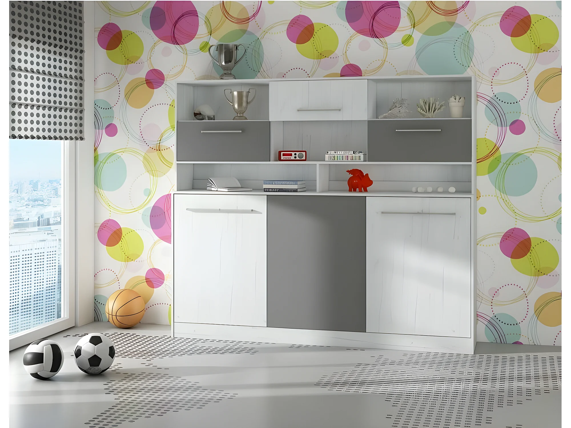 Armoire Lit escamotable Horizontal 90x200 cm avec étagères Blanc artisan/Graphite Lit Rabattable Lit Mural Roddy