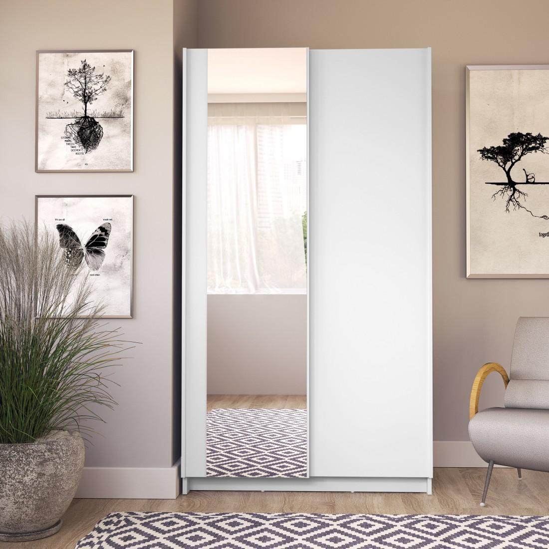Armoire LYSIA 2 portes coulissantes avec miroir – 100 x 182 x 55 cm – Coloris blanc